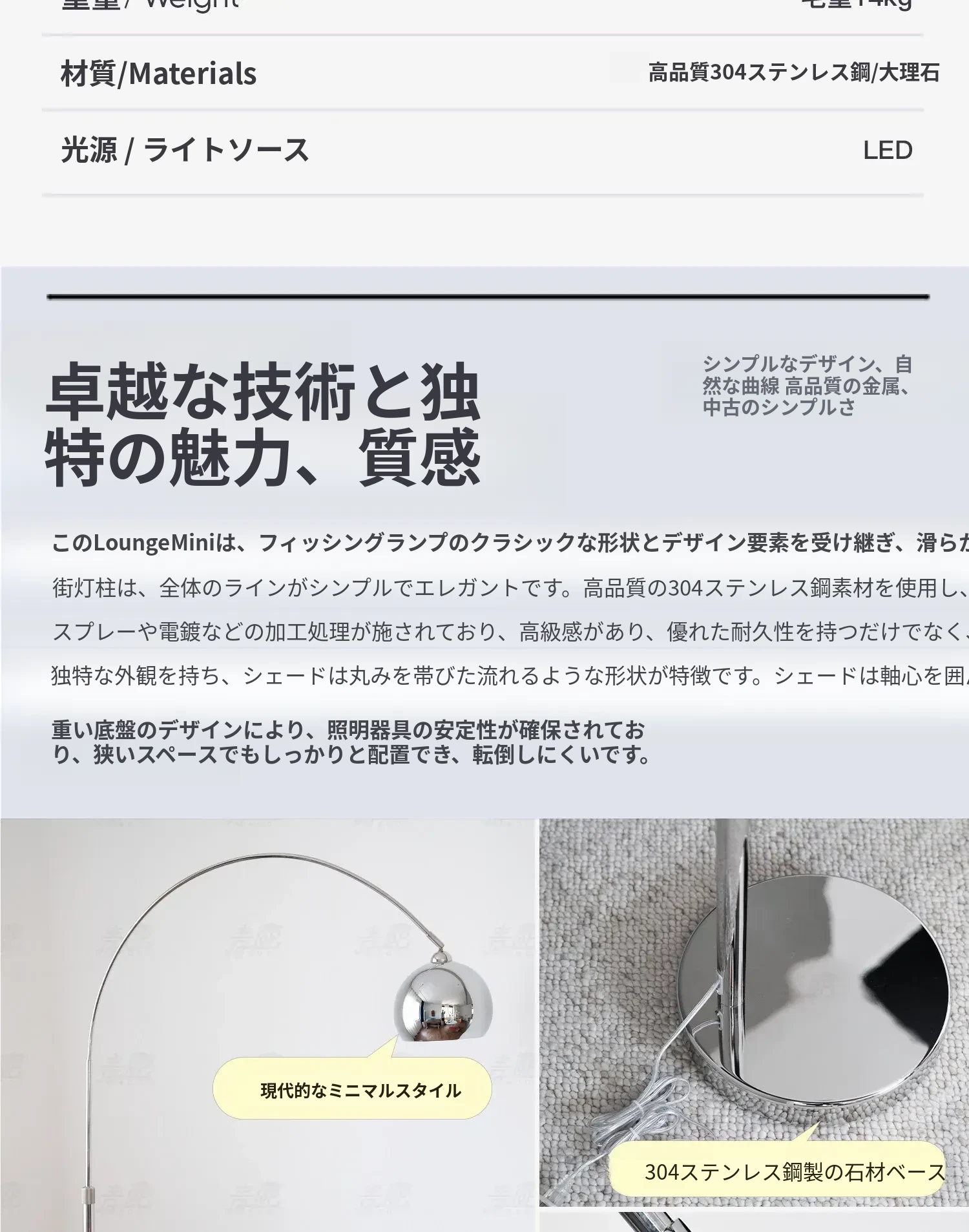 クロムシルバー 調節可能な灯柱【高級ステンレス版】