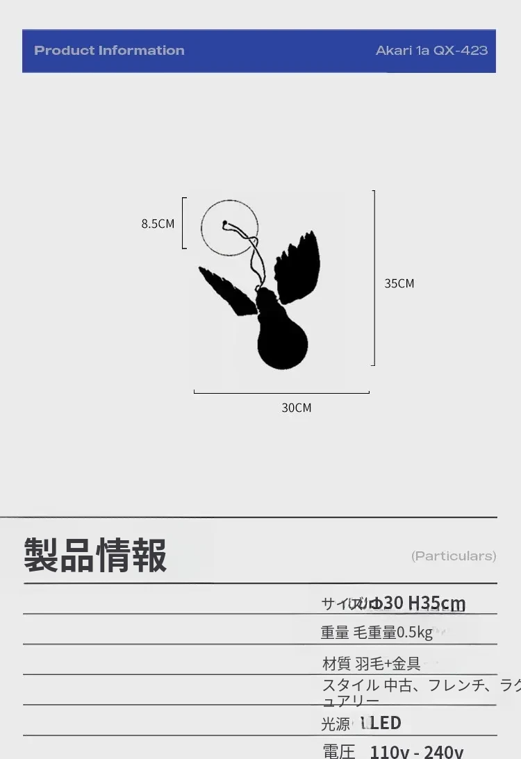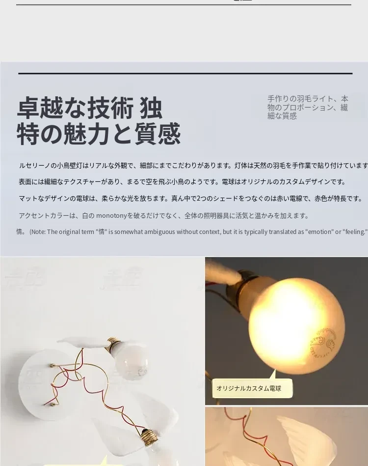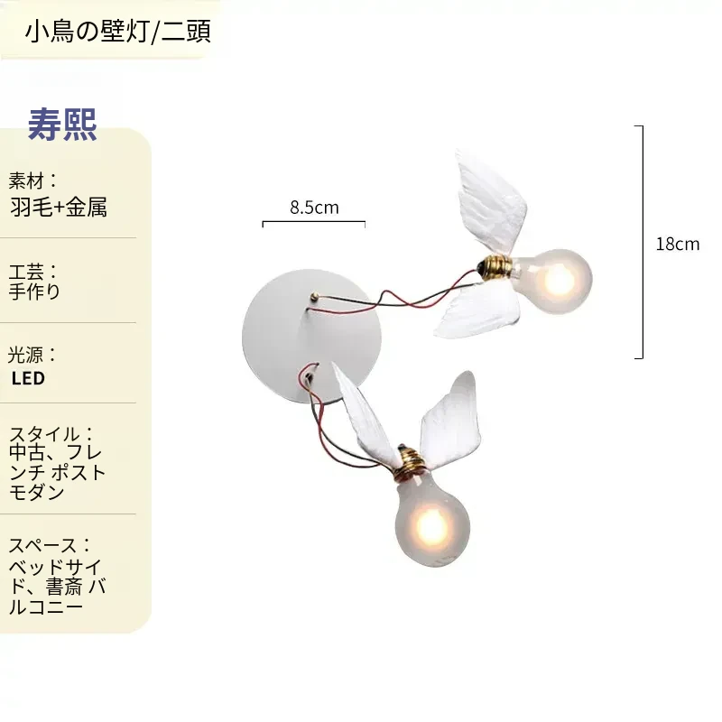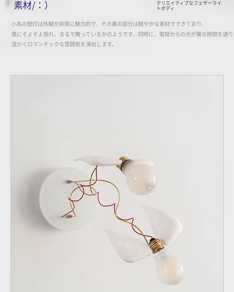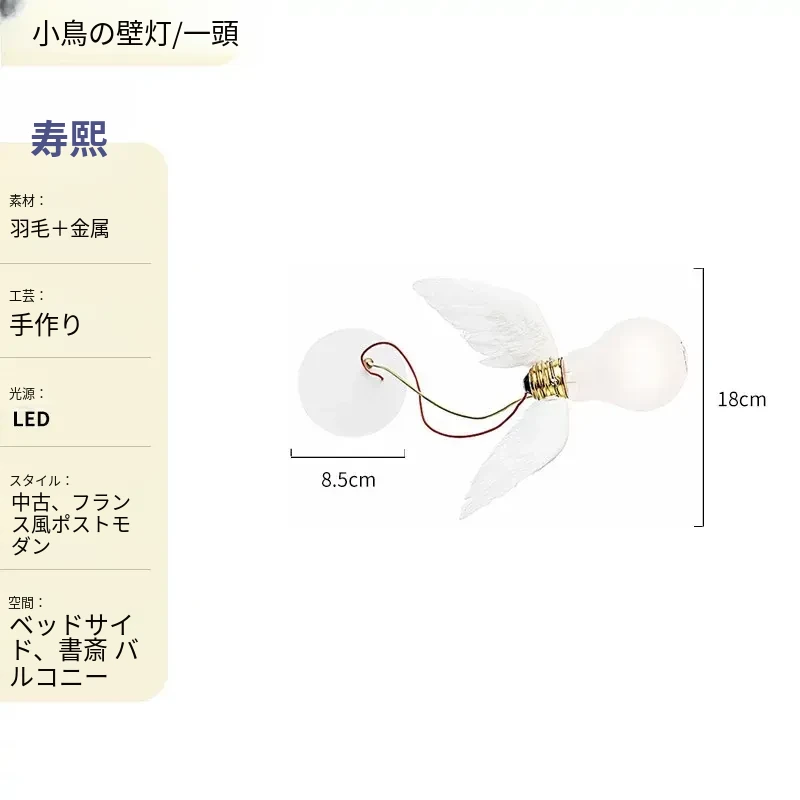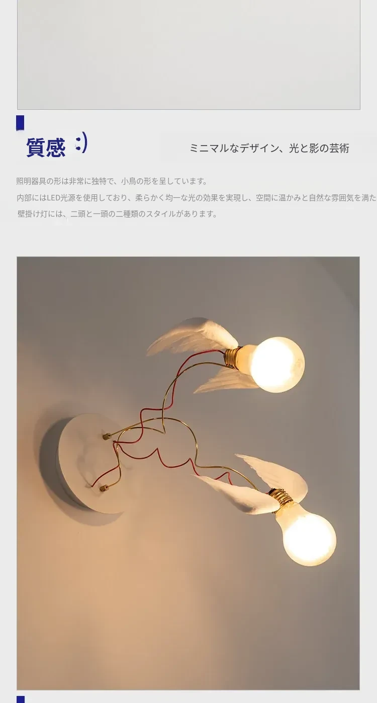 北欧ルチェリーノ 中古フランス風壁灯 天使の翼を持つ小鳥のフェザーライト リビング・寝室・ベッドサイドに最適!おしゃれで温かみのある空間を演出します!