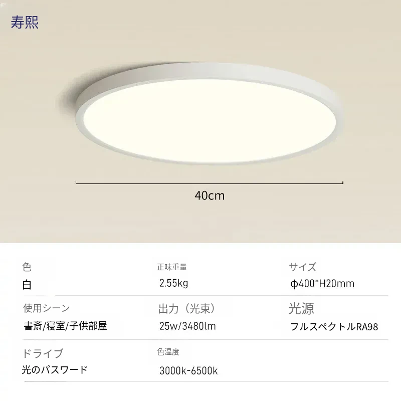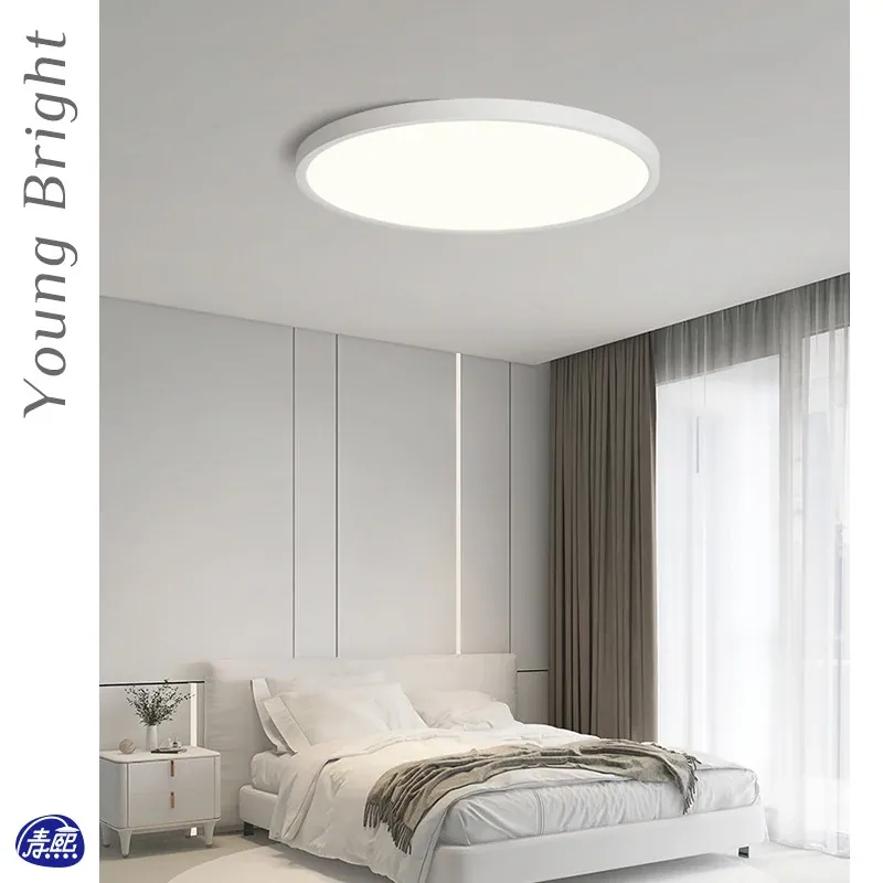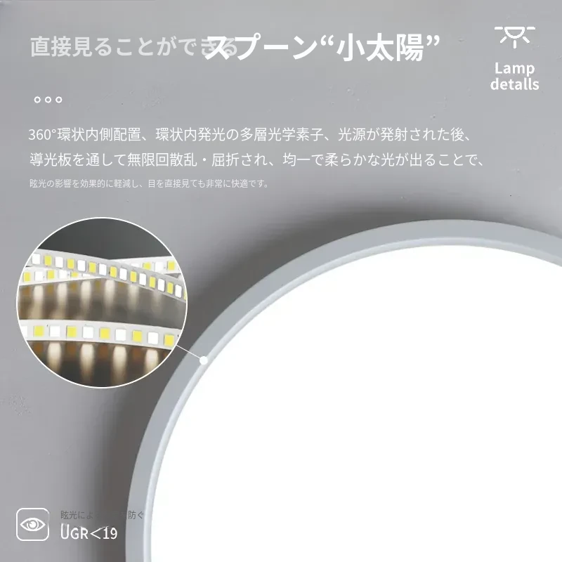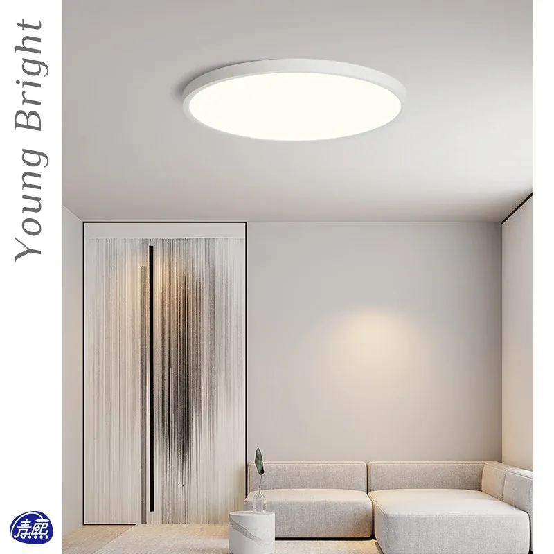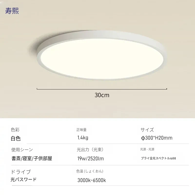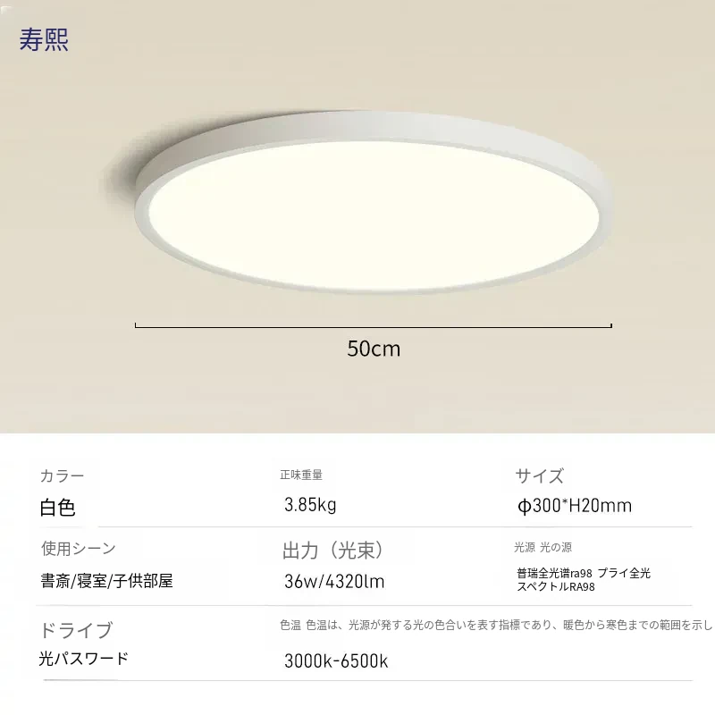 北欧スタイルのスマート薄型LEDライト - 目に優しい円形デザイン、シンプルでモダンな書斎やバルコニーにぴったり!おしゃれなインテリアを演出する天井照明。