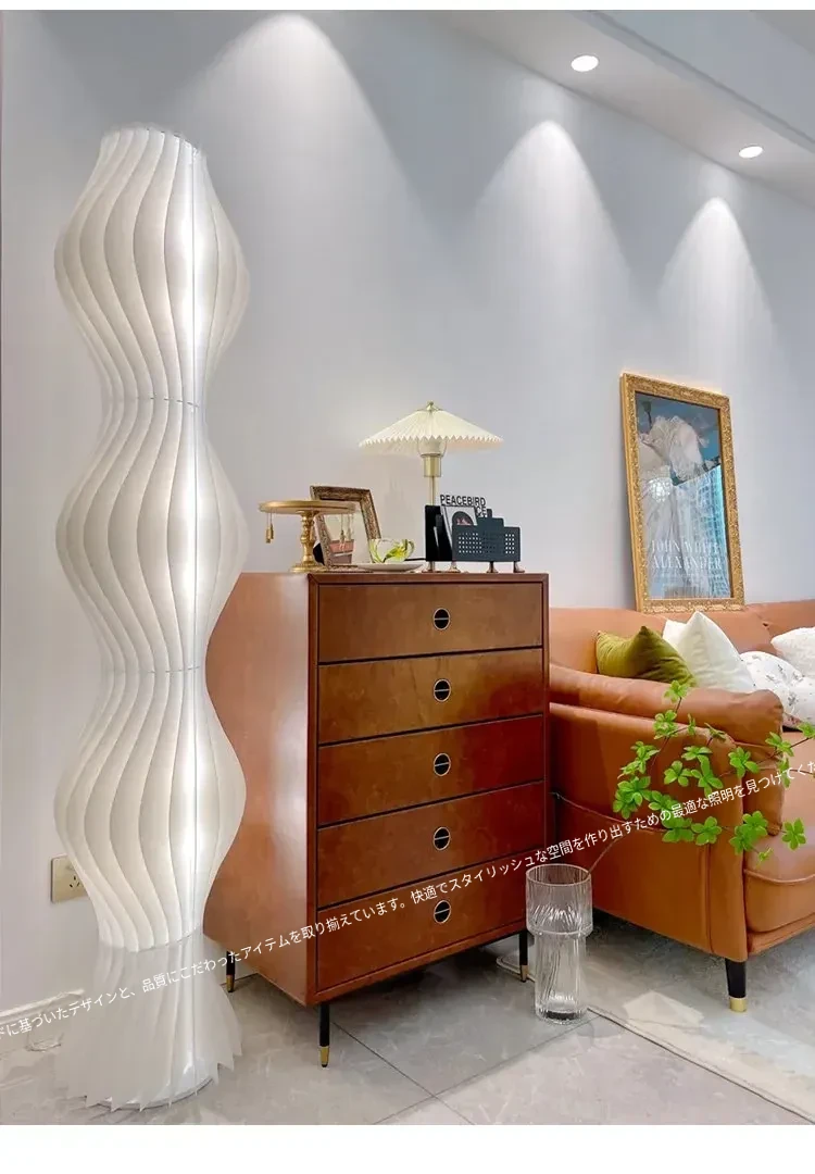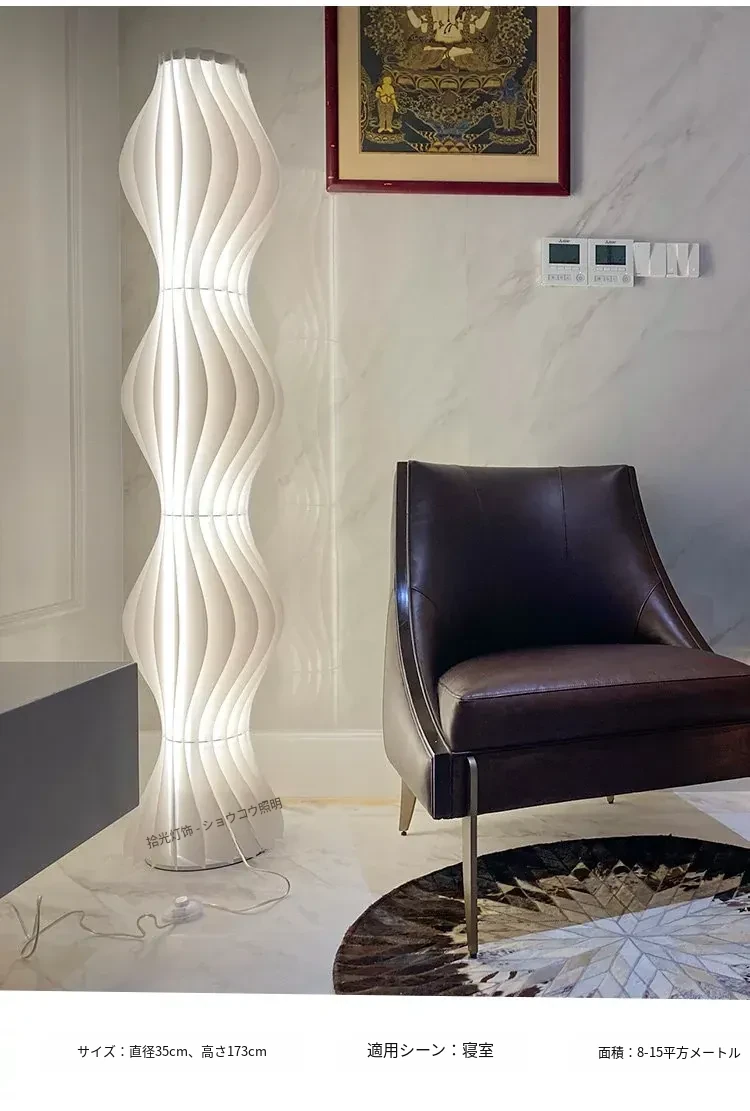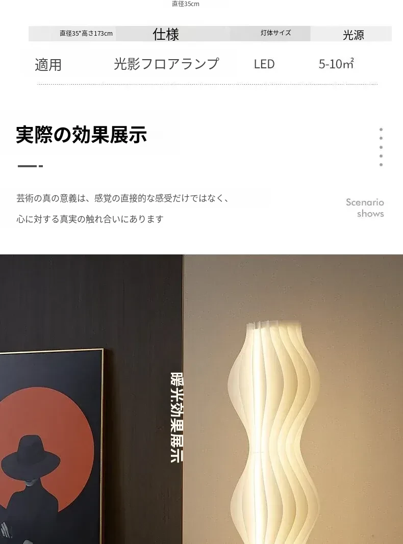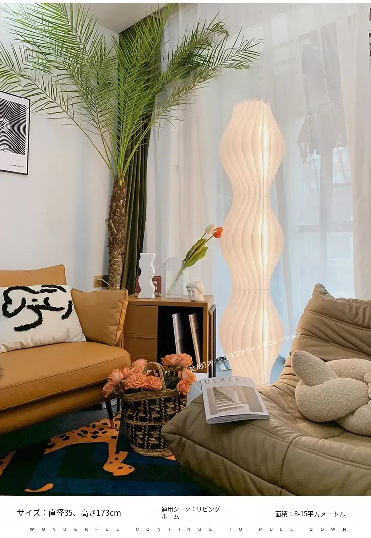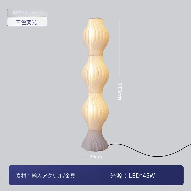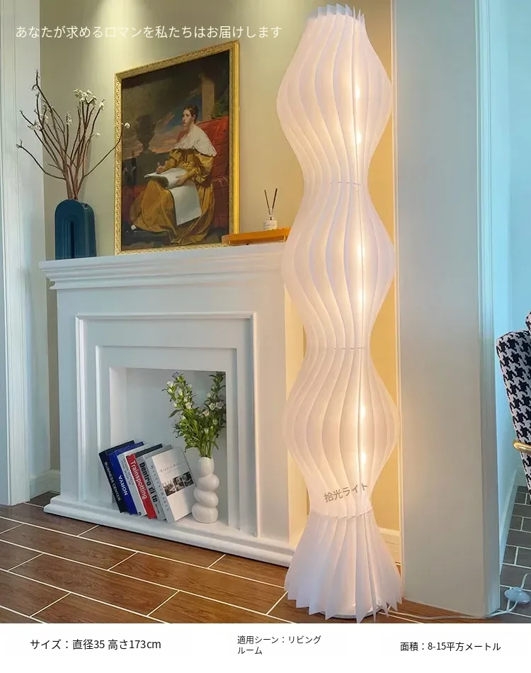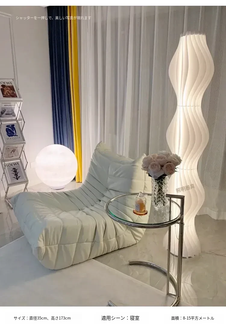 北欧スタイルのリビング・ダイニングに最適!軽やかなホワイト草スカートが魅力のイタリア製モダンデザインのフロアランプ。おしゃれな影を演出し、心地よい空間を作り出します。