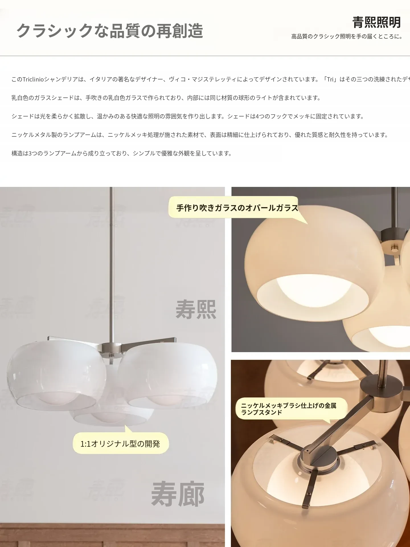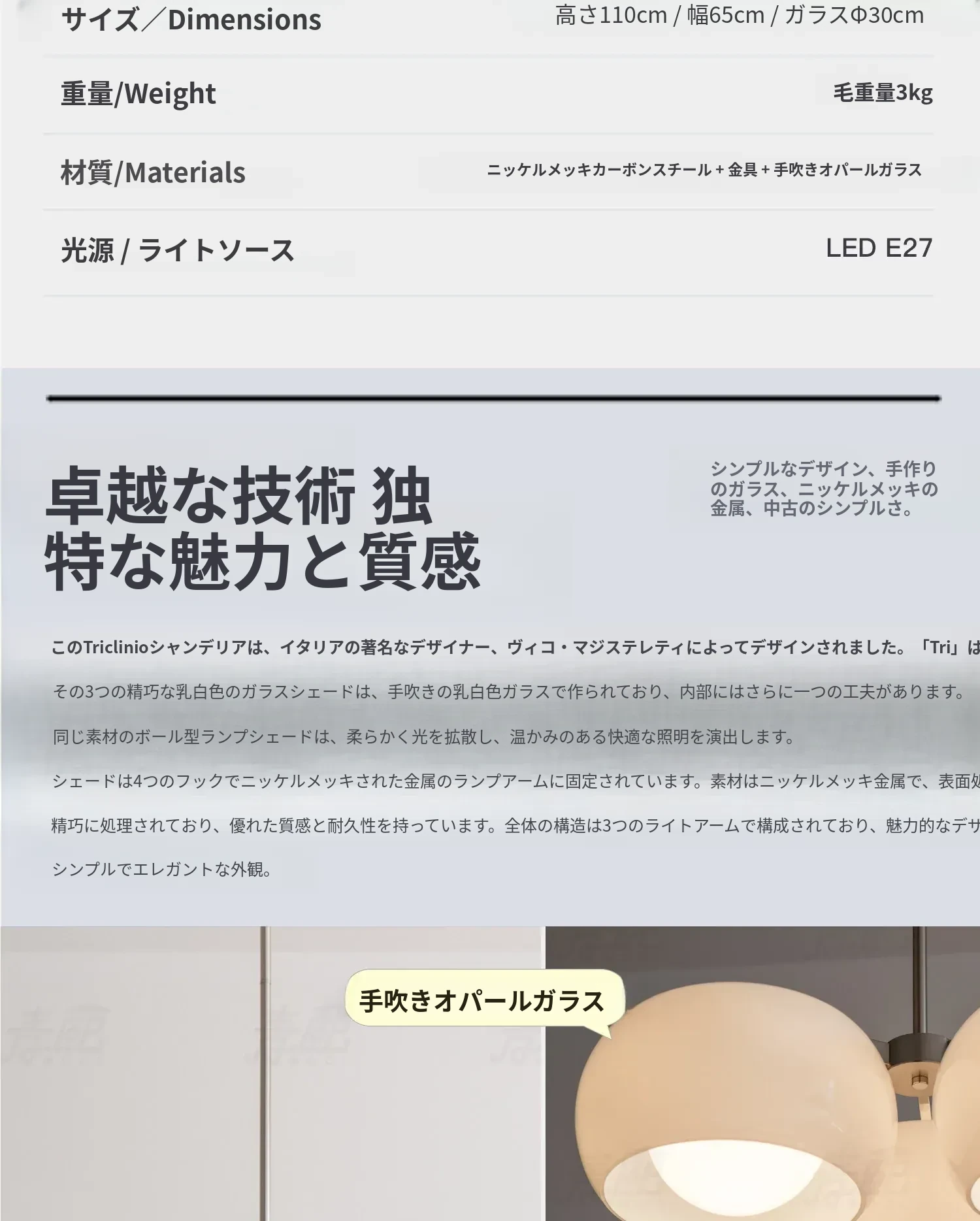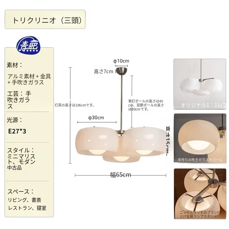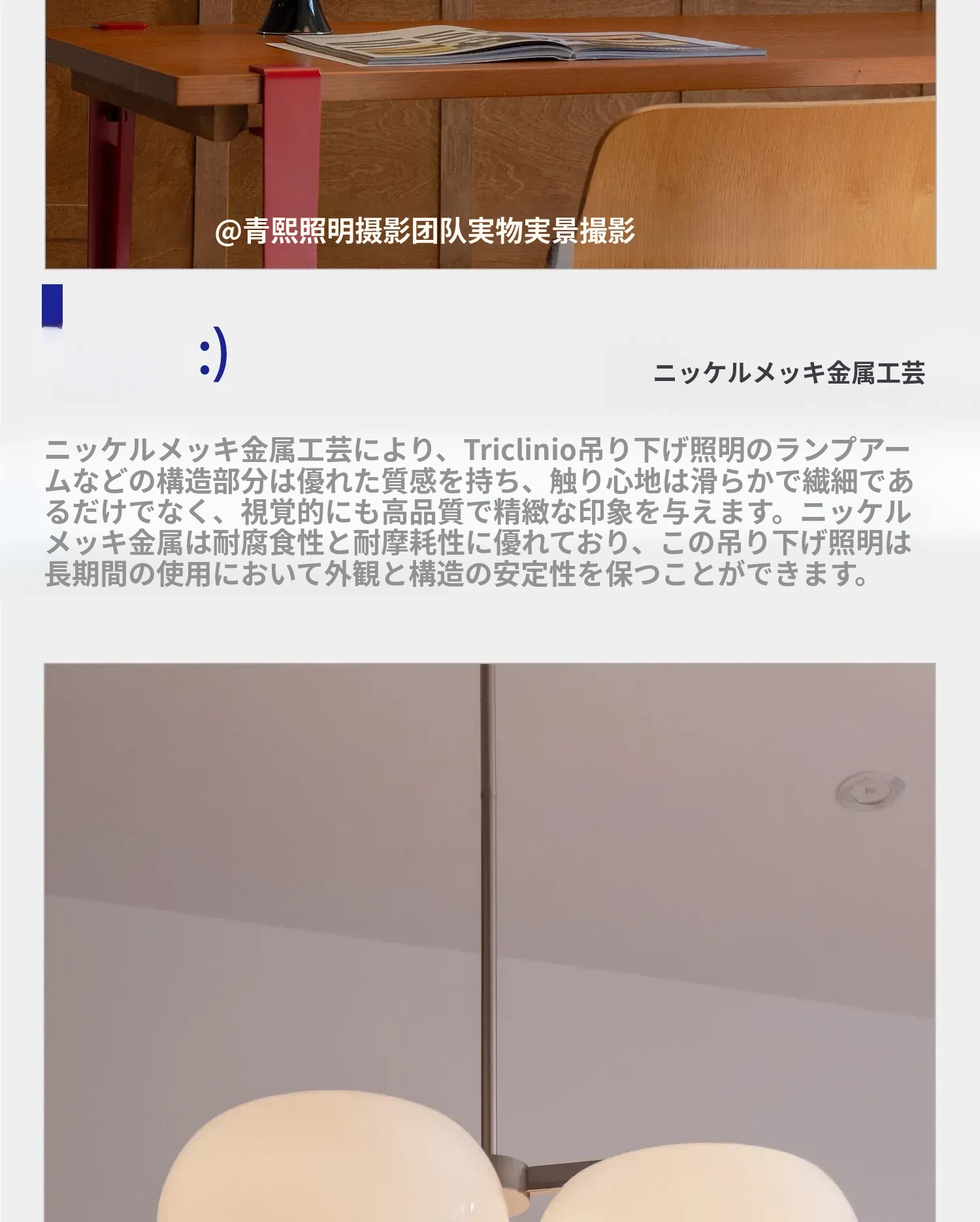 北欧風デザインのTheTriclinio三連ガラス吊りランプ - モダンなクリエイティブなレストランやリビングにぴったりのインテリア照明!