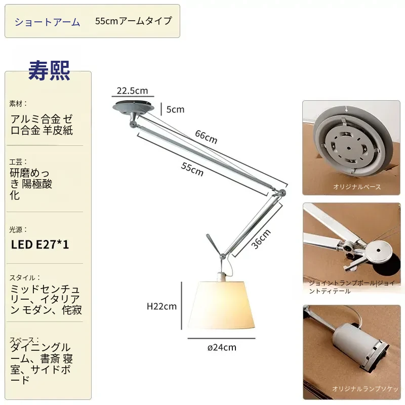 青熙|移動可能な書斎用イタリア製トロメオアーム吊り下げライト - おしゃれなダイニング&ベッドルームデザイン照明。洗練されたスタイルで空間を華やかに演出!