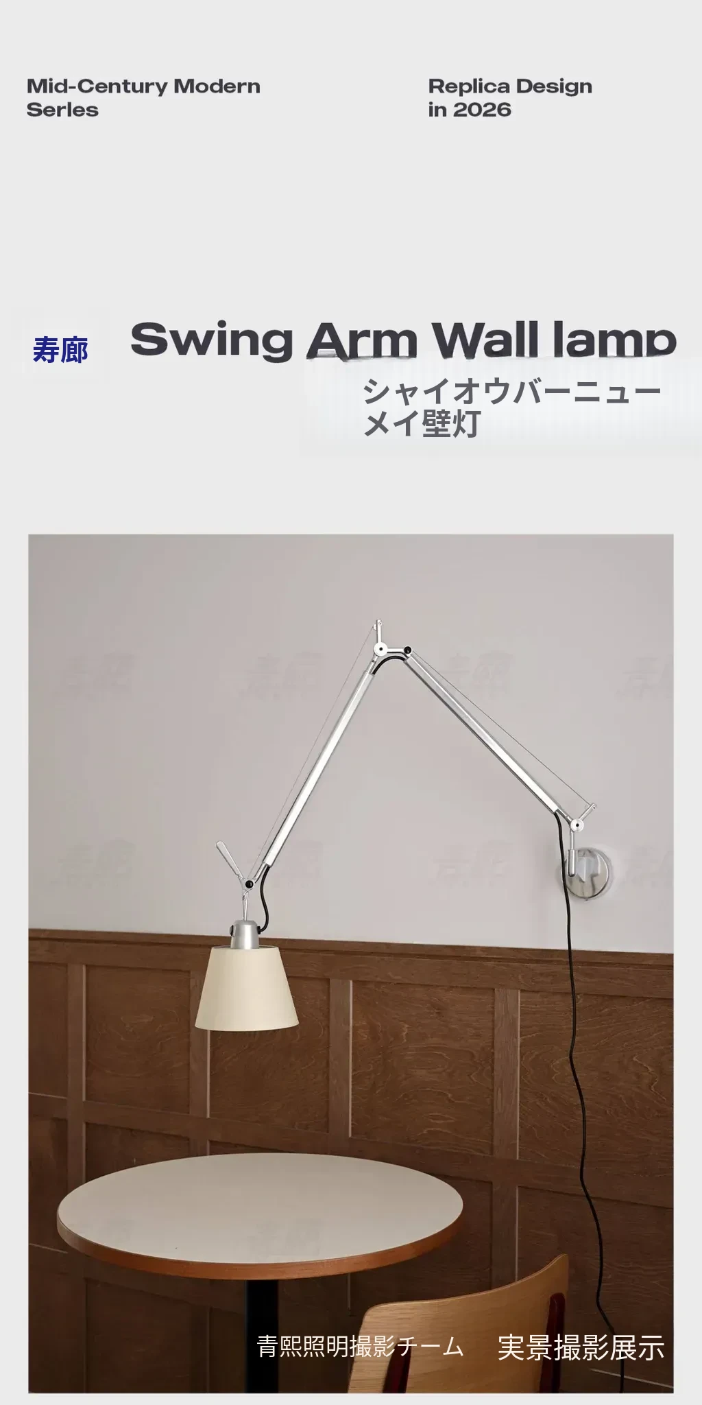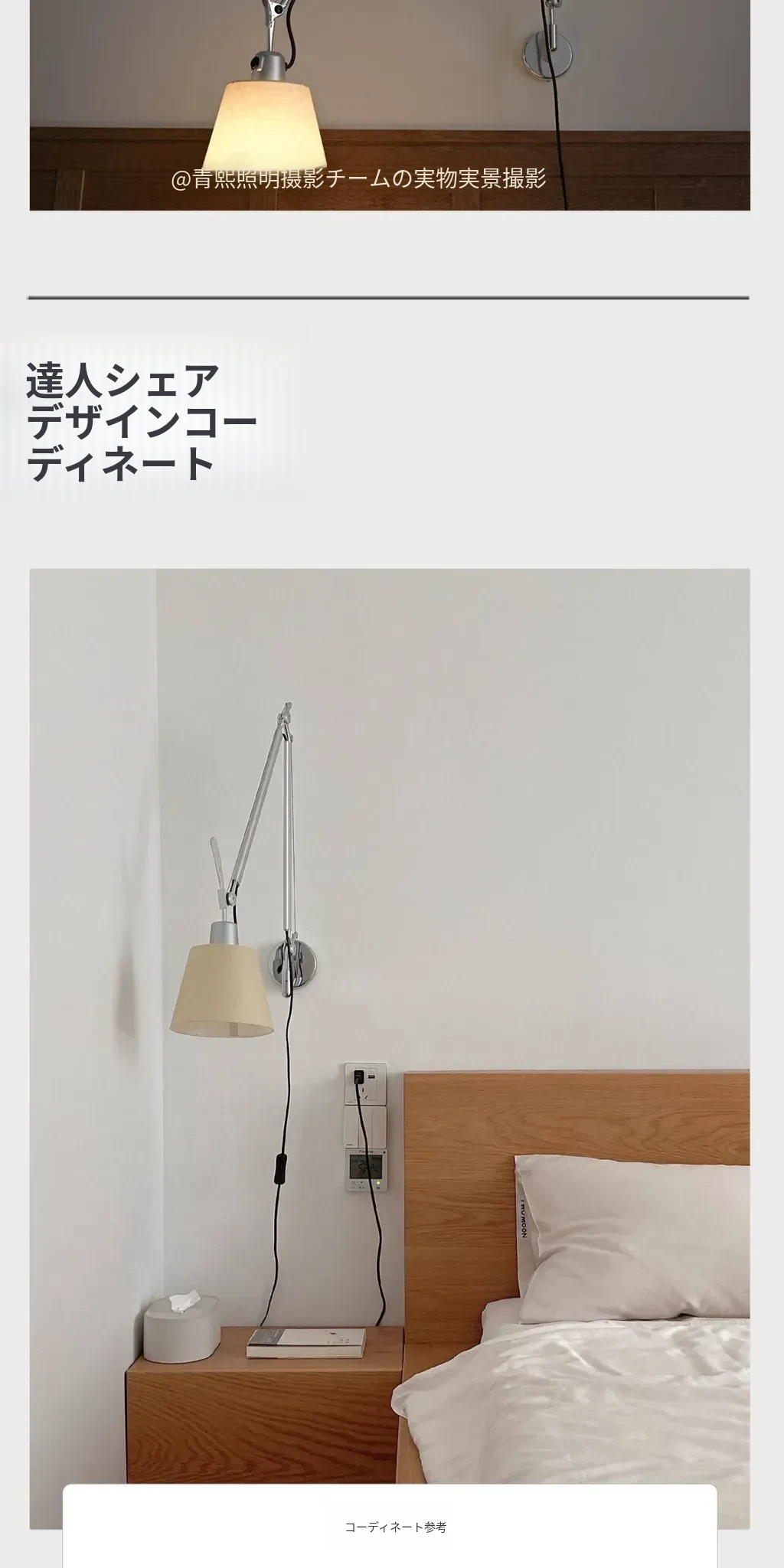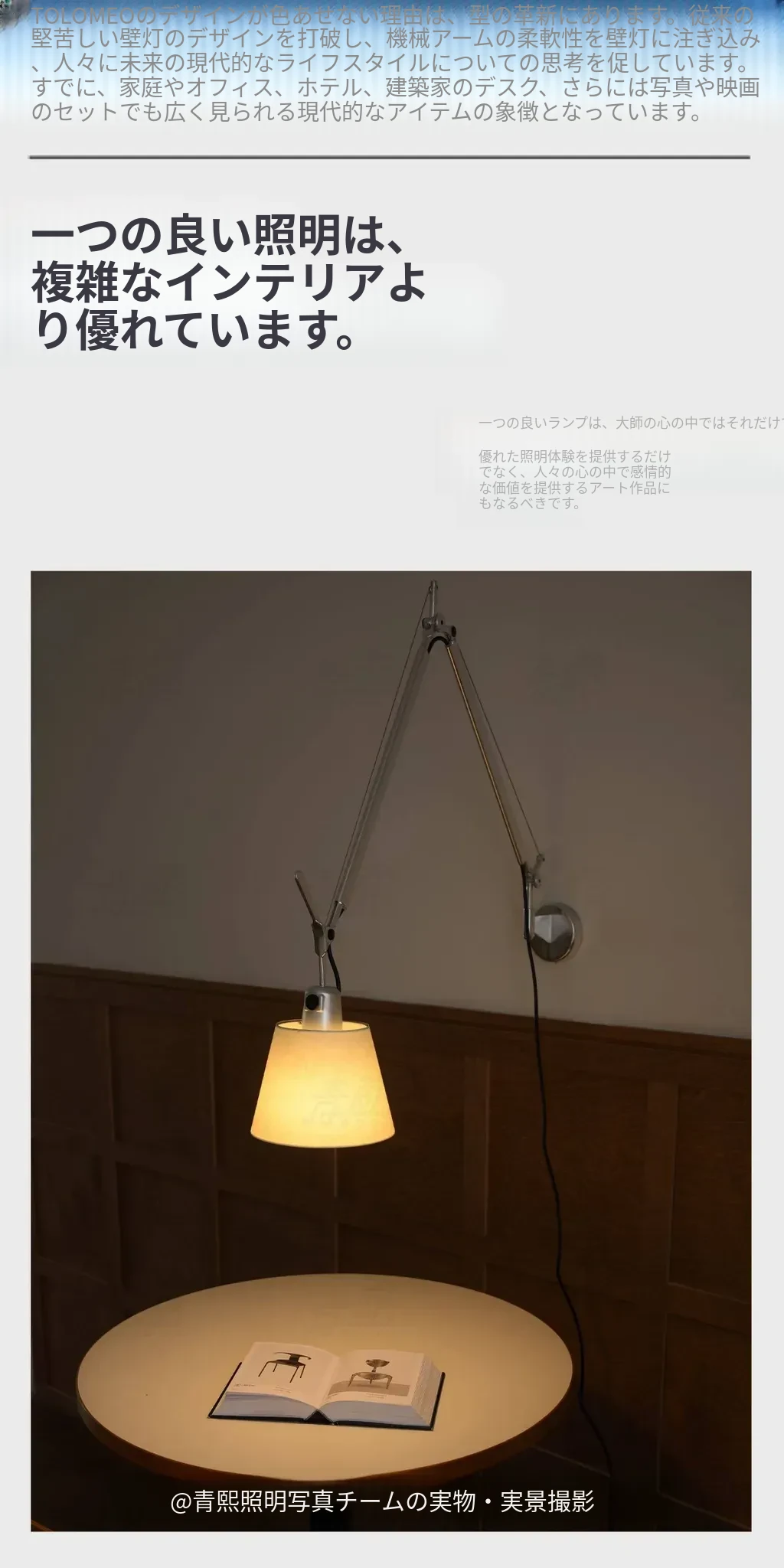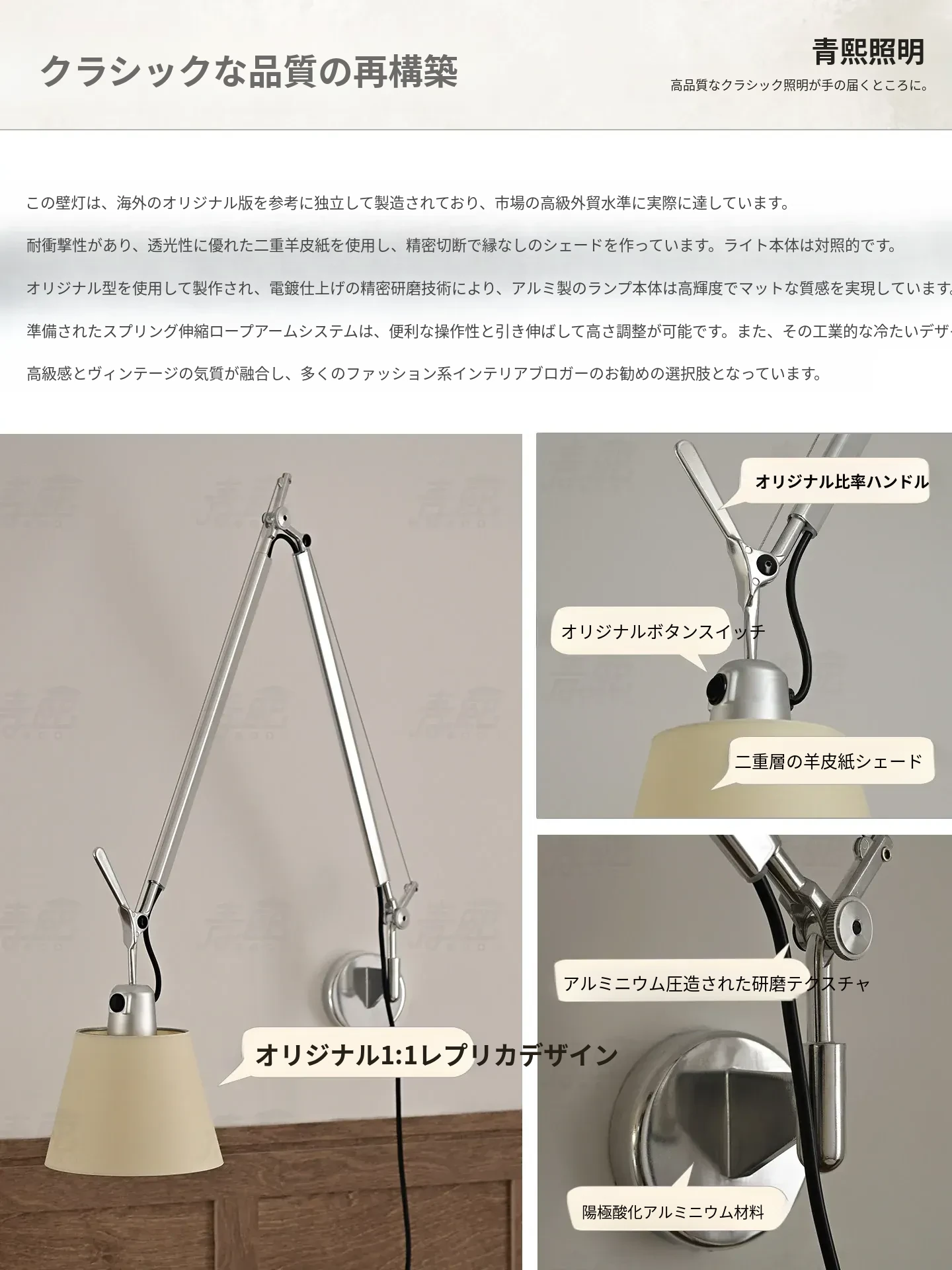 青熙│Tolomeoアーム伸縮デザインのデザイナーズリビング壁灯、書斎・寝室・ベッドサイドでの読書に最適なヴィンテージスタイルの壁灯。スタイリッシュな空間を演出し、心地よい光でリラックスしたひとときをお届けします。