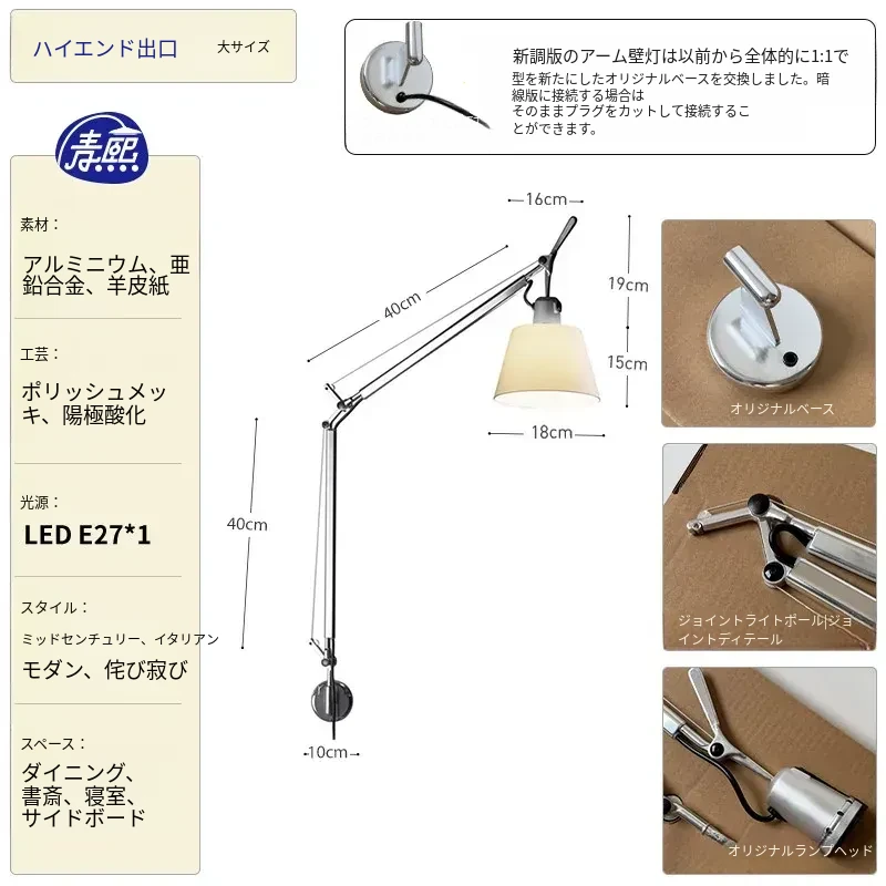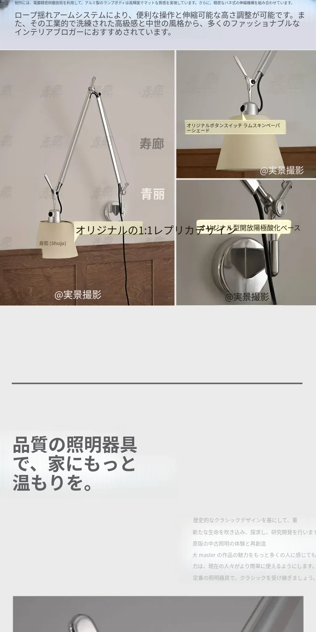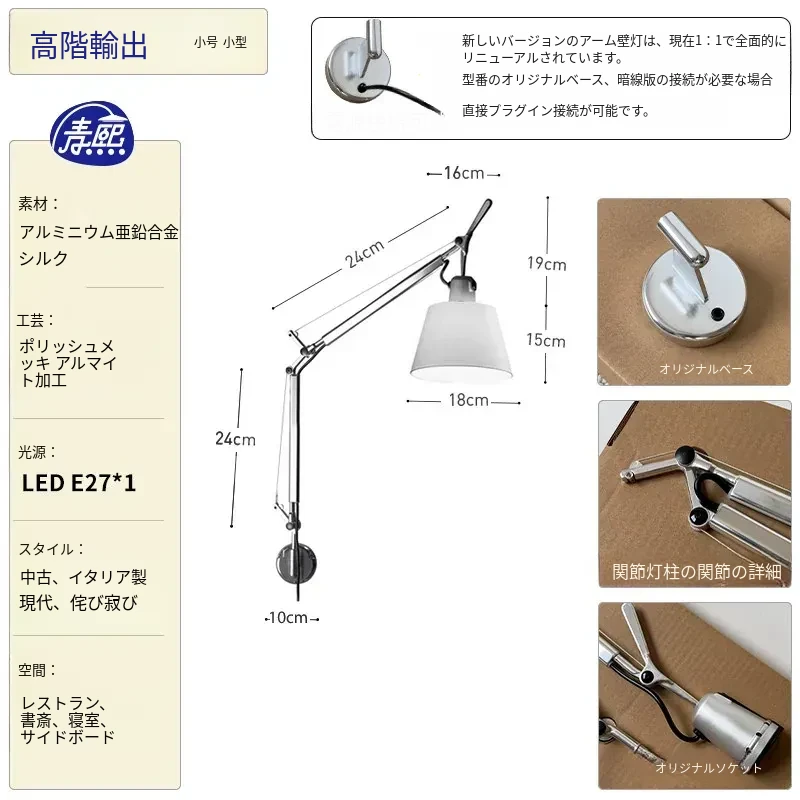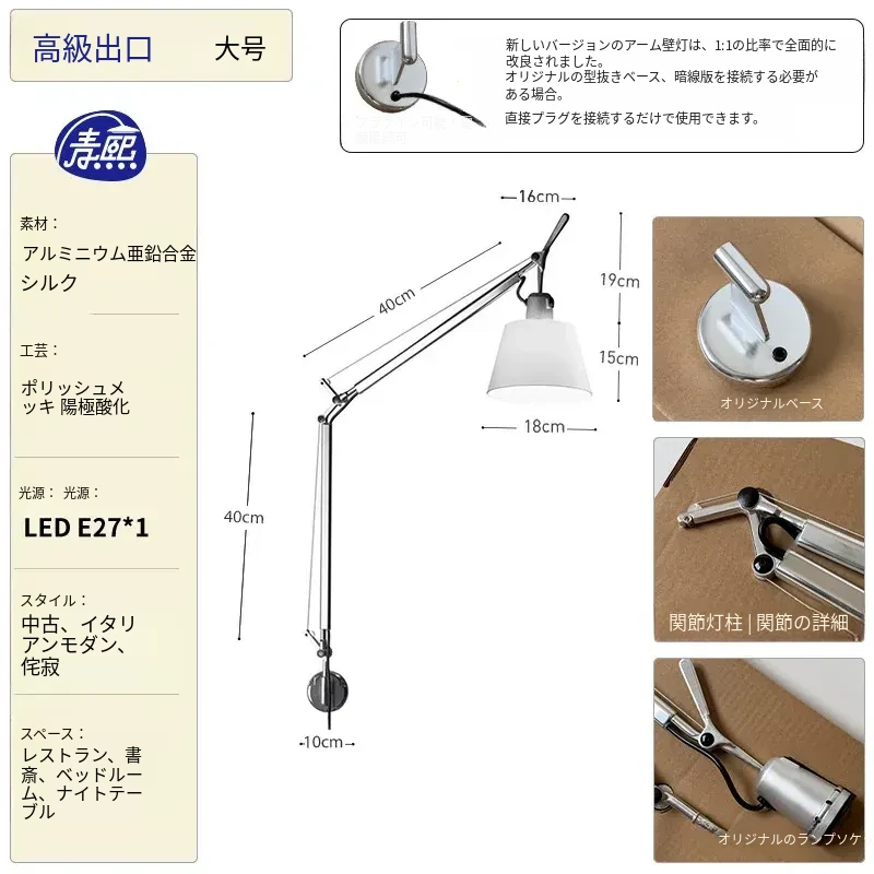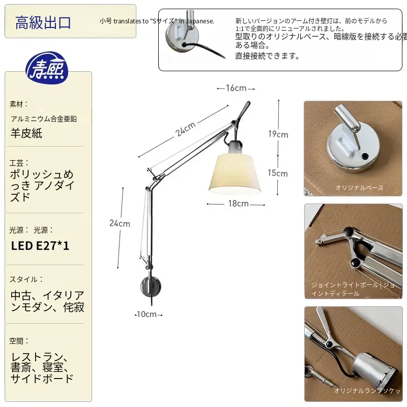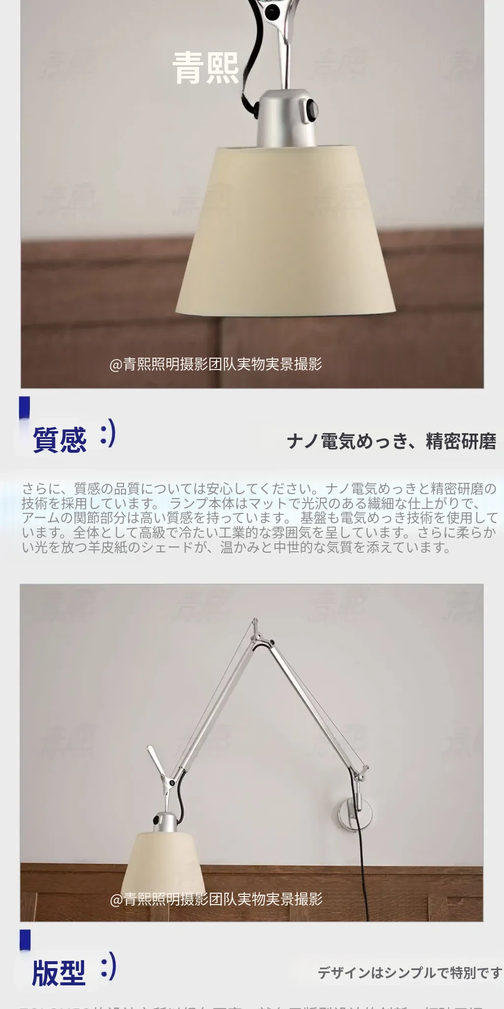 青熙│Tolomeoアーム伸縮デザインのデザイナーズリビング壁灯、書斎・寝室・ベッドサイドでの読書に最適なヴィンテージスタイルの壁灯。スタイリッシュな空間を演出し、心地よい光でリラックスしたひとときをお届けします。