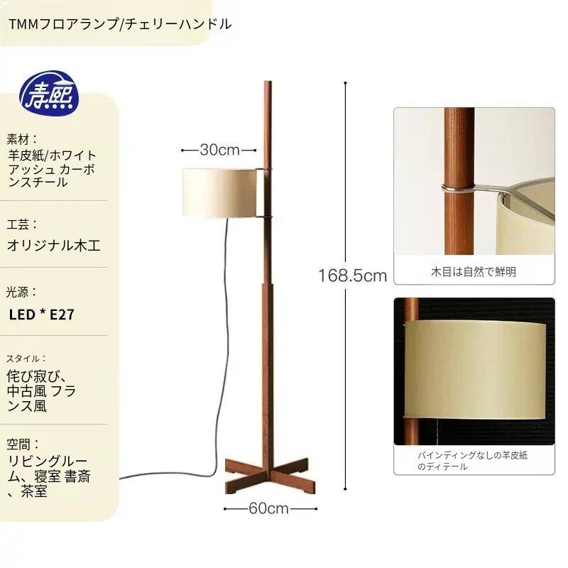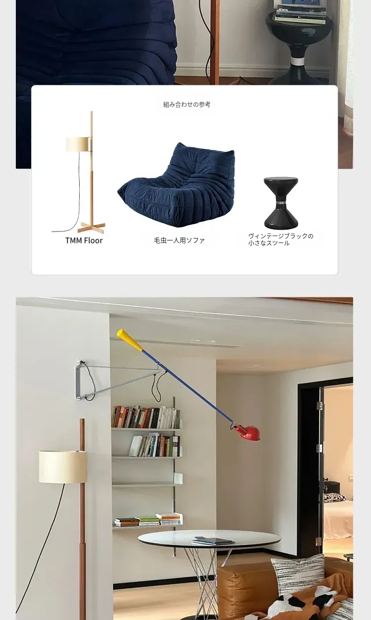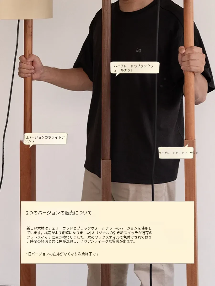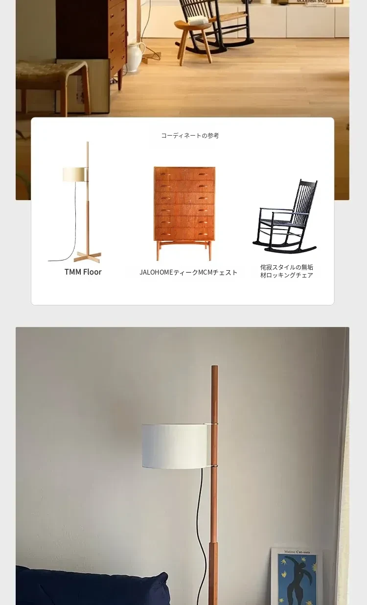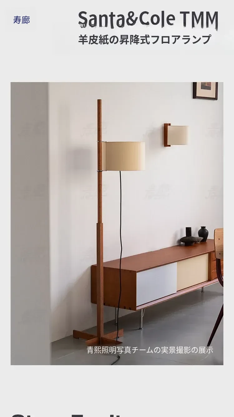 Santa&Coleウォールナットフロアランプ TMM - ナチュラルな風合いでミニマルなデザイン!古風なソファ横にぴったりな侘寂スタイルの調節可能な照明。居心地の良いリビング空間を演出します。