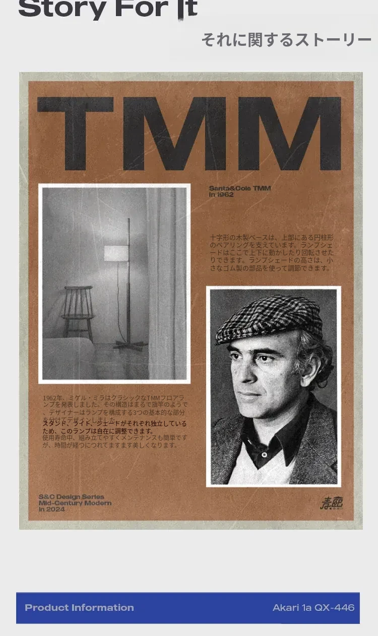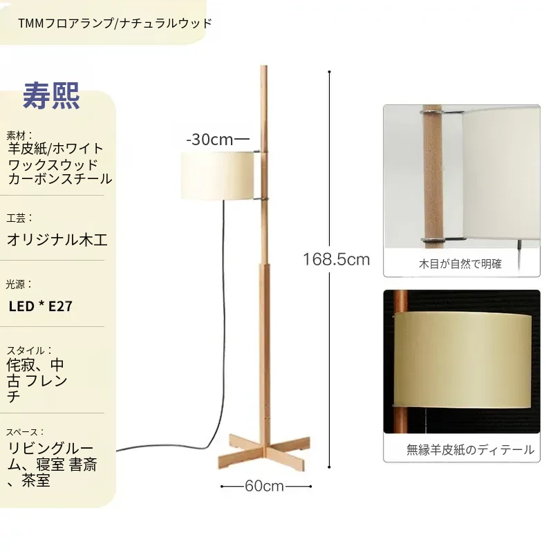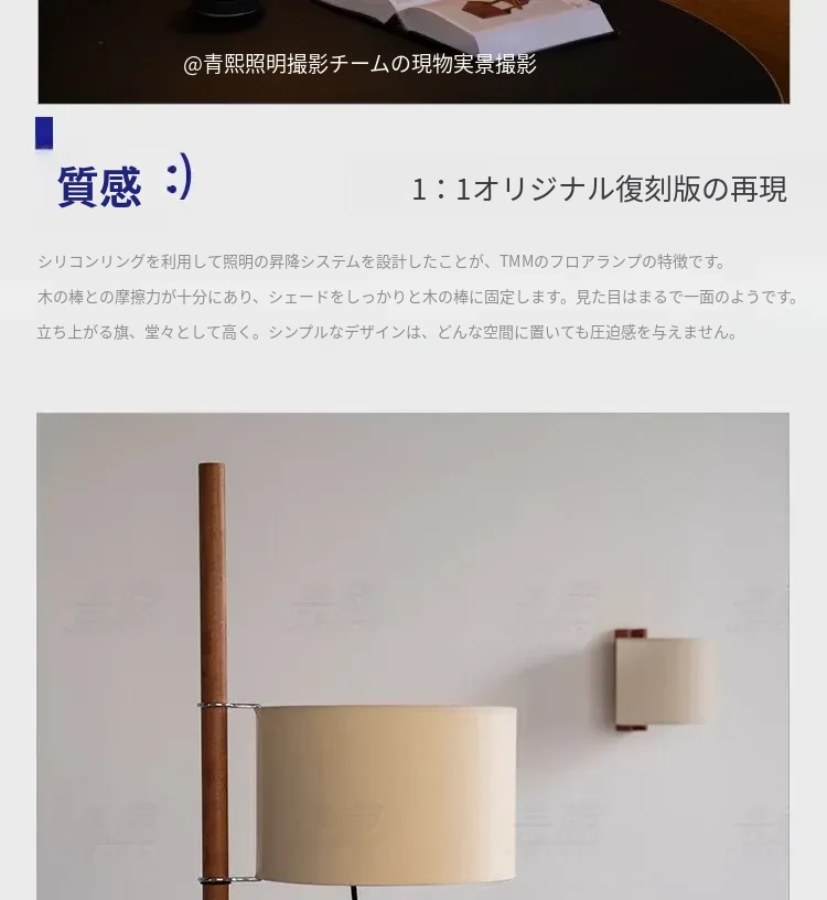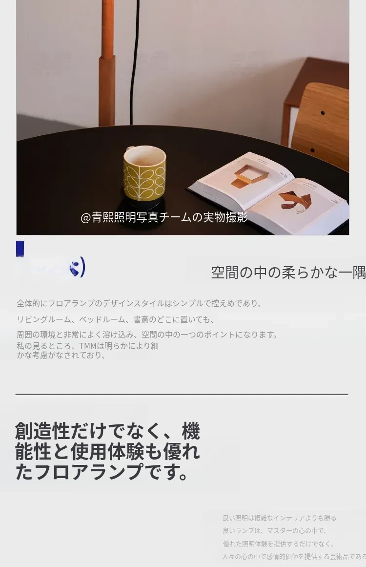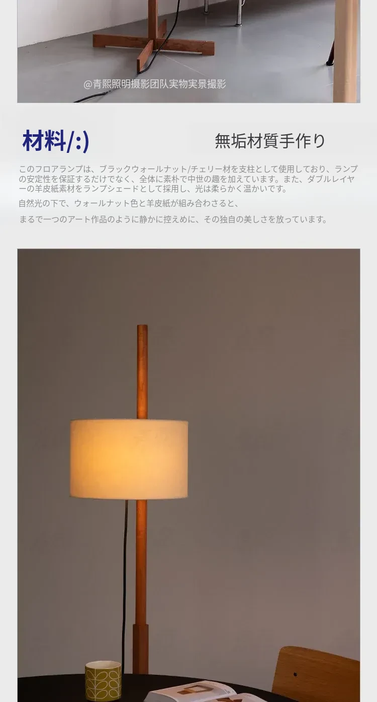 Santa&Coleウォールナットフロアランプ TMM - ナチュラルな風合いでミニマルなデザイン!古風なソファ横にぴったりな侘寂スタイルの調節可能な照明。居心地の良いリビング空間を演出します。