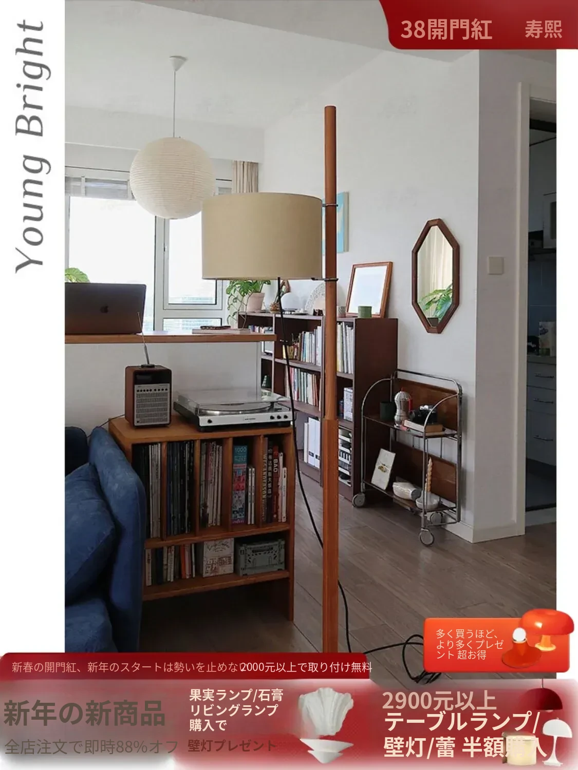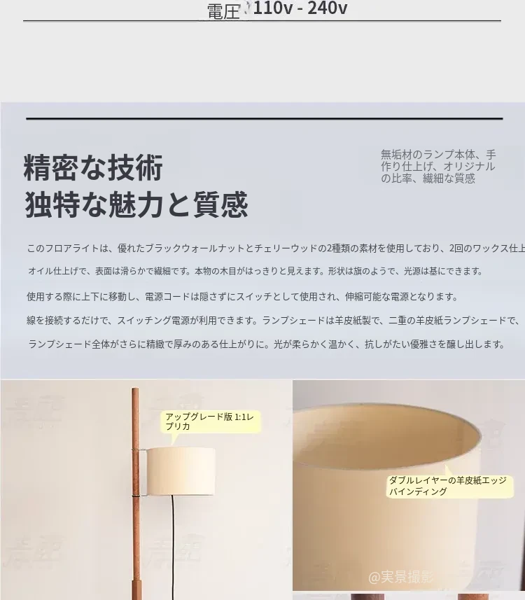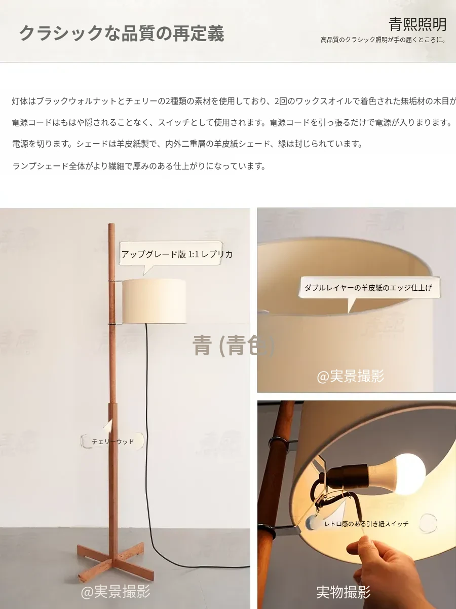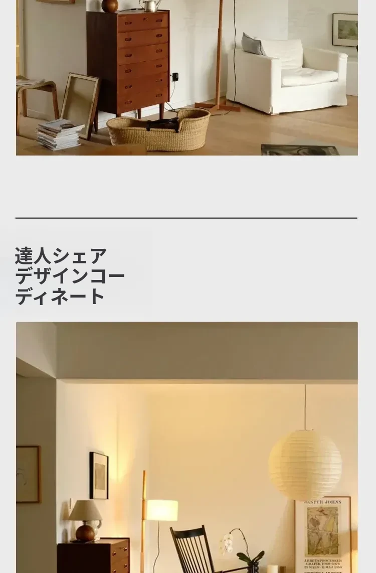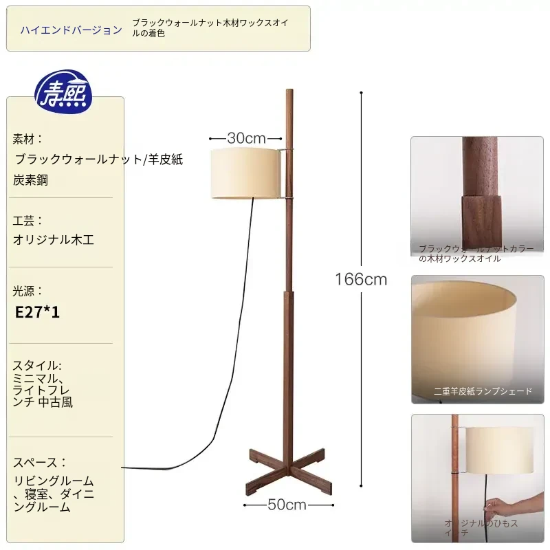 Santa&Coleウォールナットフロアランプ TMM - ナチュラルな風合いでミニマルなデザイン!古風なソファ横にぴったりな侘寂スタイルの調節可能な照明。居心地の良いリビング空間を演出します。