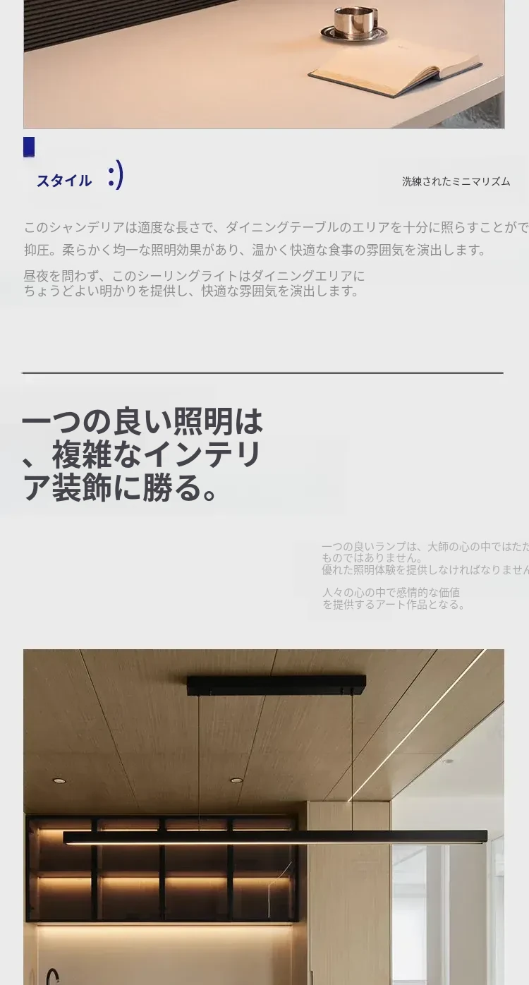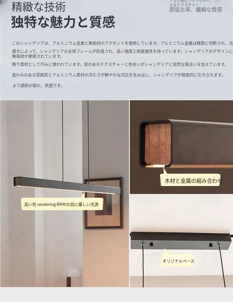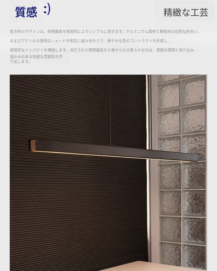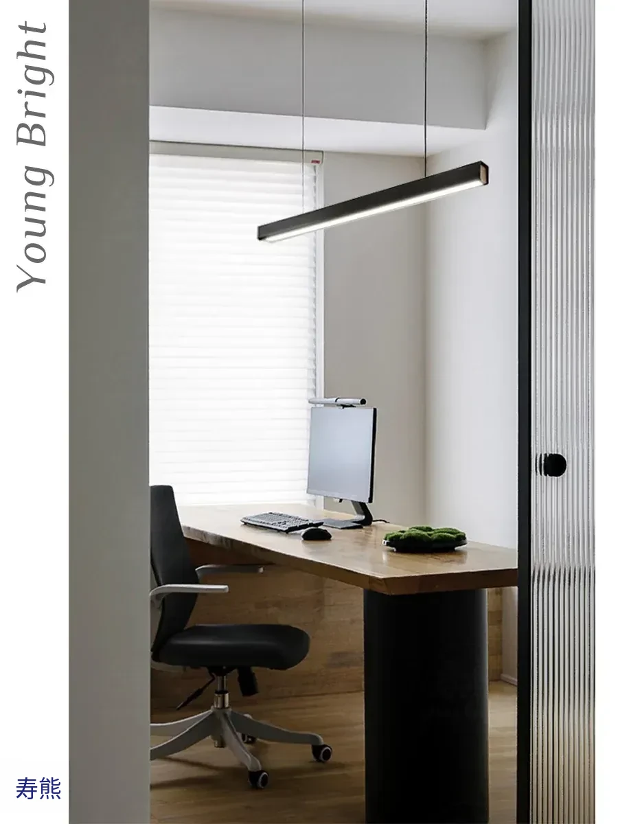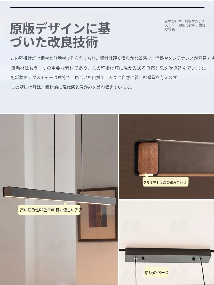 台湾のミニマリストデザイン!シンプルでスタイリッシュな一字型ダイニングテーブル用ペンダントライト。バーや書斎、ダイニングルームに最適な木製ロングバーライト。おしゃれな空間を演出します!