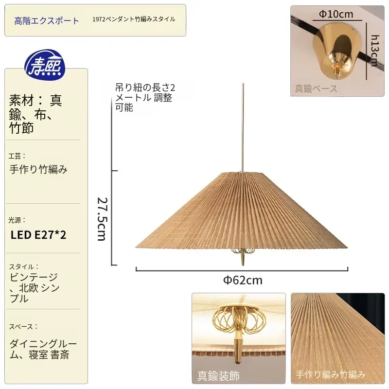 北欧デンマーク1972年製ヴィンテージ侘寂風フレンチシャンデリア - リビング・ダイニングにぴったりな新中式の斗笠ライトで、洗練された雰囲気を演出します!