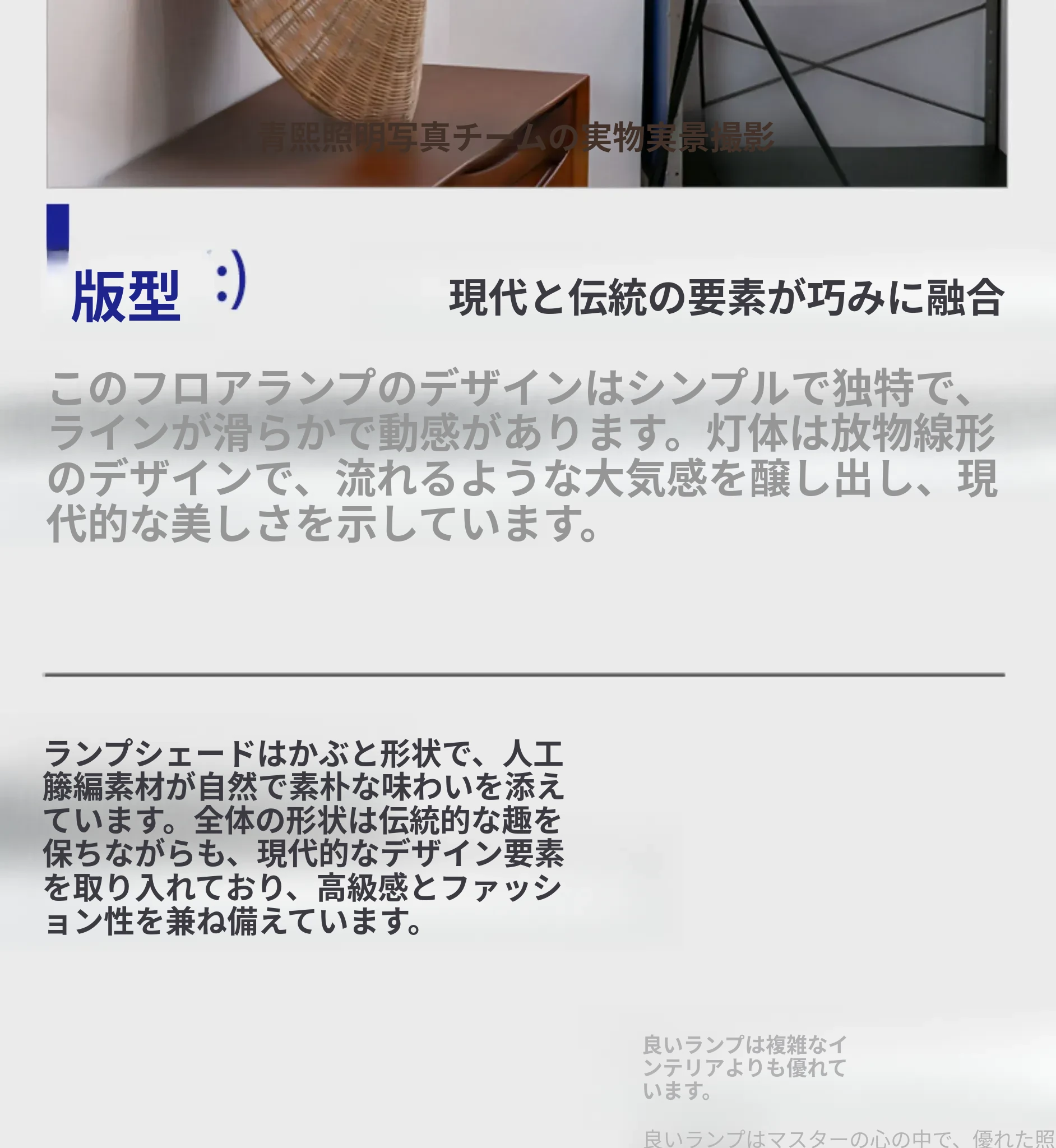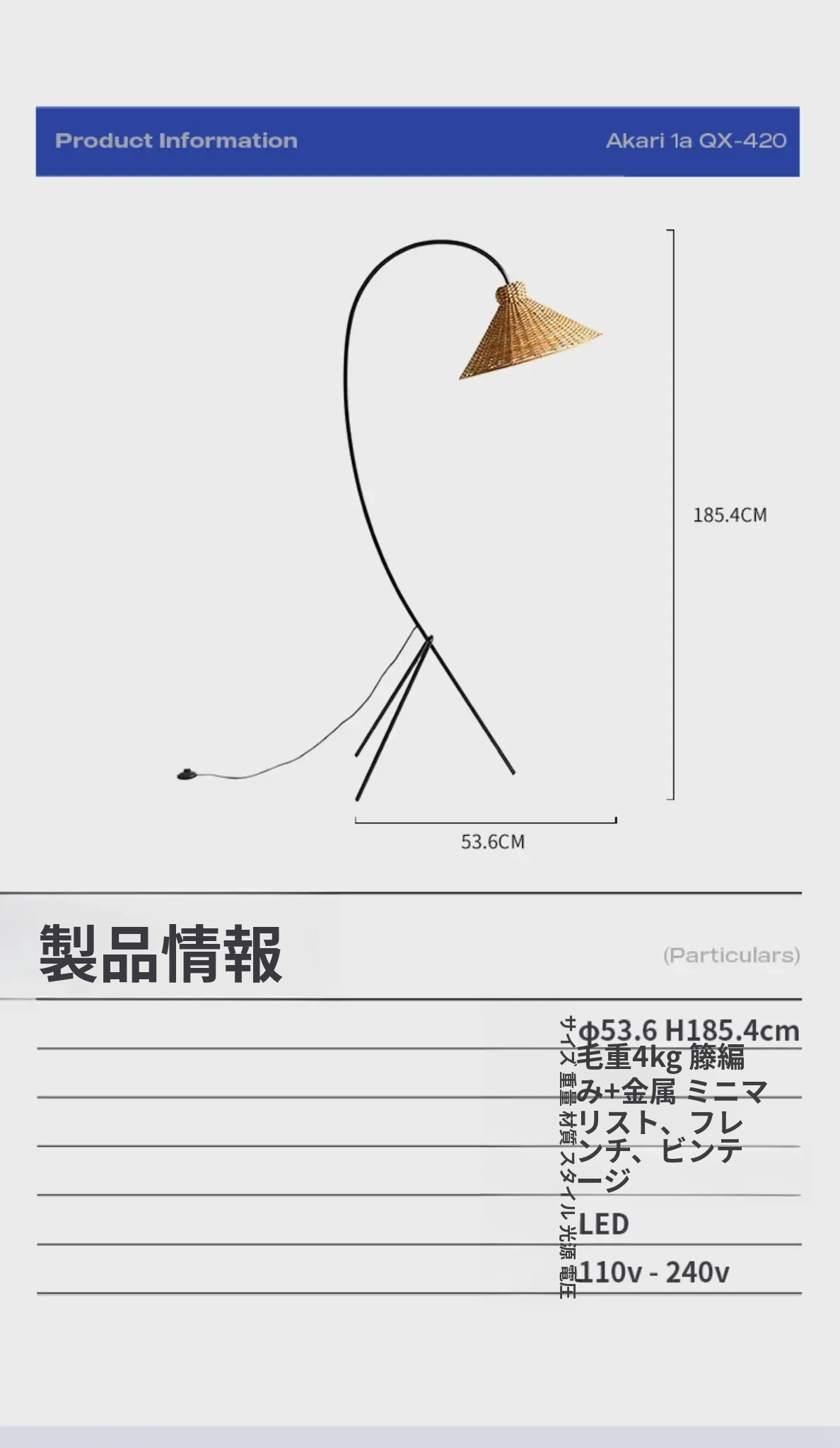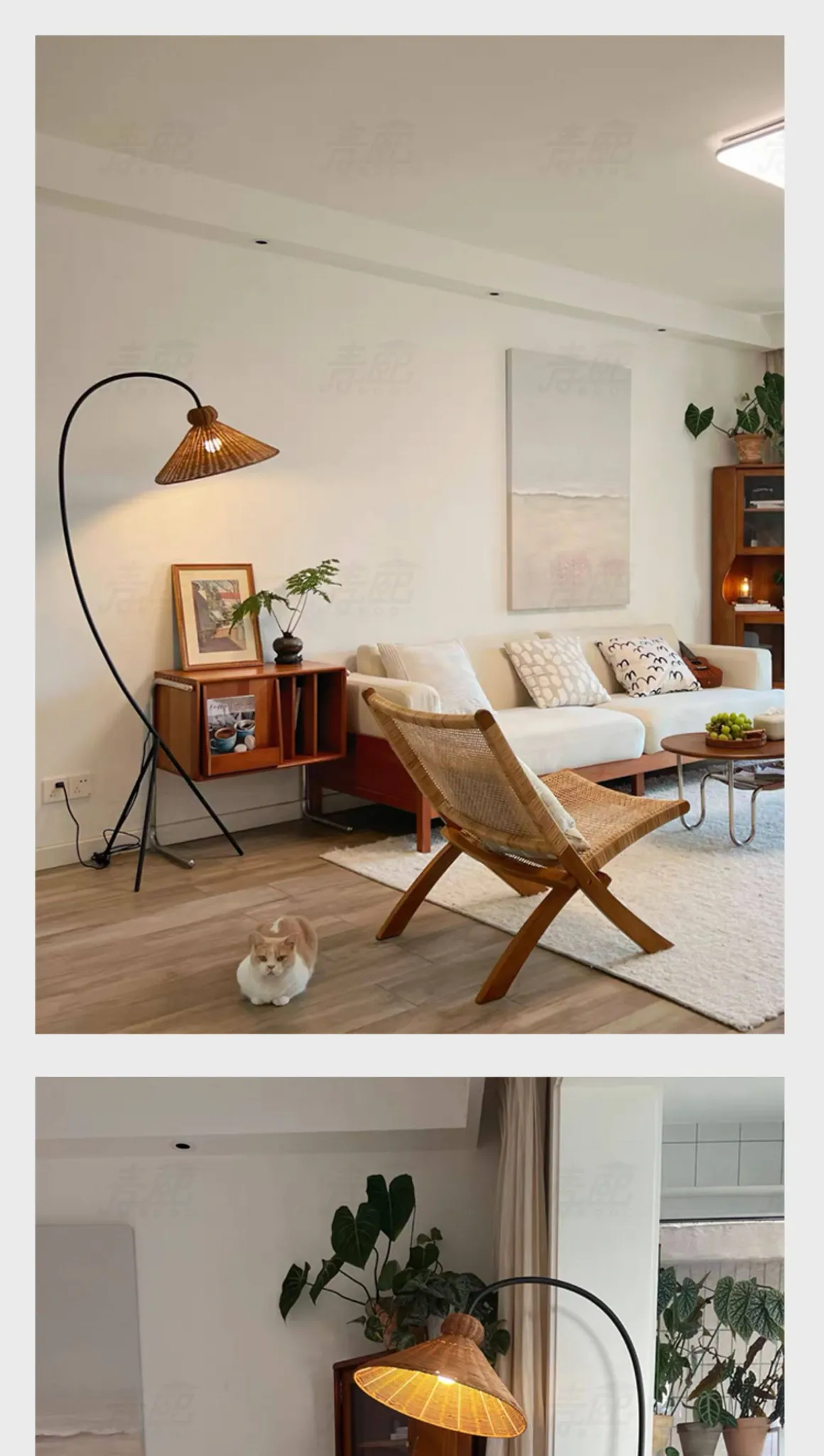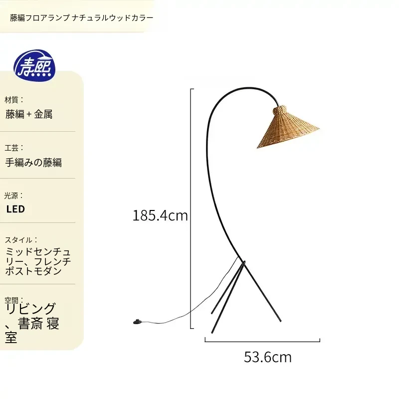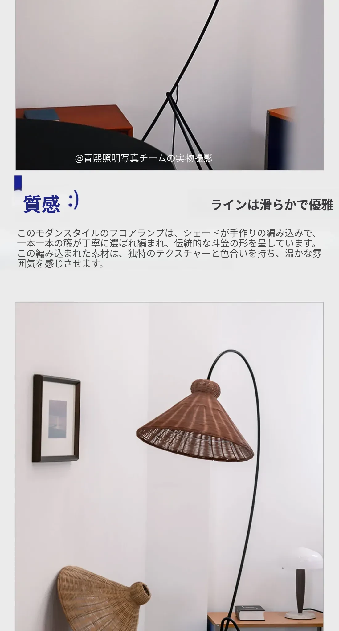 中古フランス製アテナ藤編み侘び寂び風フィッシングフロアランプ 新中式リビングソファ用レトロデザイン照明 - おしゃれで落ち着いた雰囲気を演出!