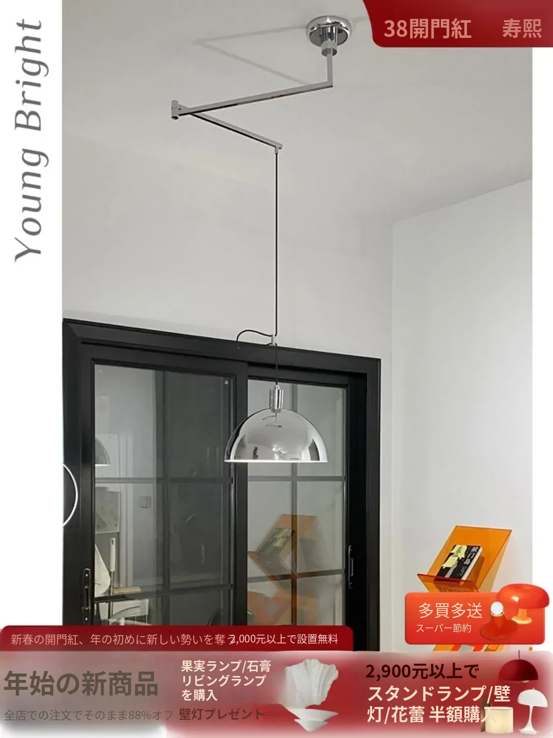 北欧デザインのバウハウス風レトロレストラン用ペンダントライト - 中古バー台やアイランドテーブルに最適!移動可能なシルバー吊り線ライトで、おしゃれな空間を演出。