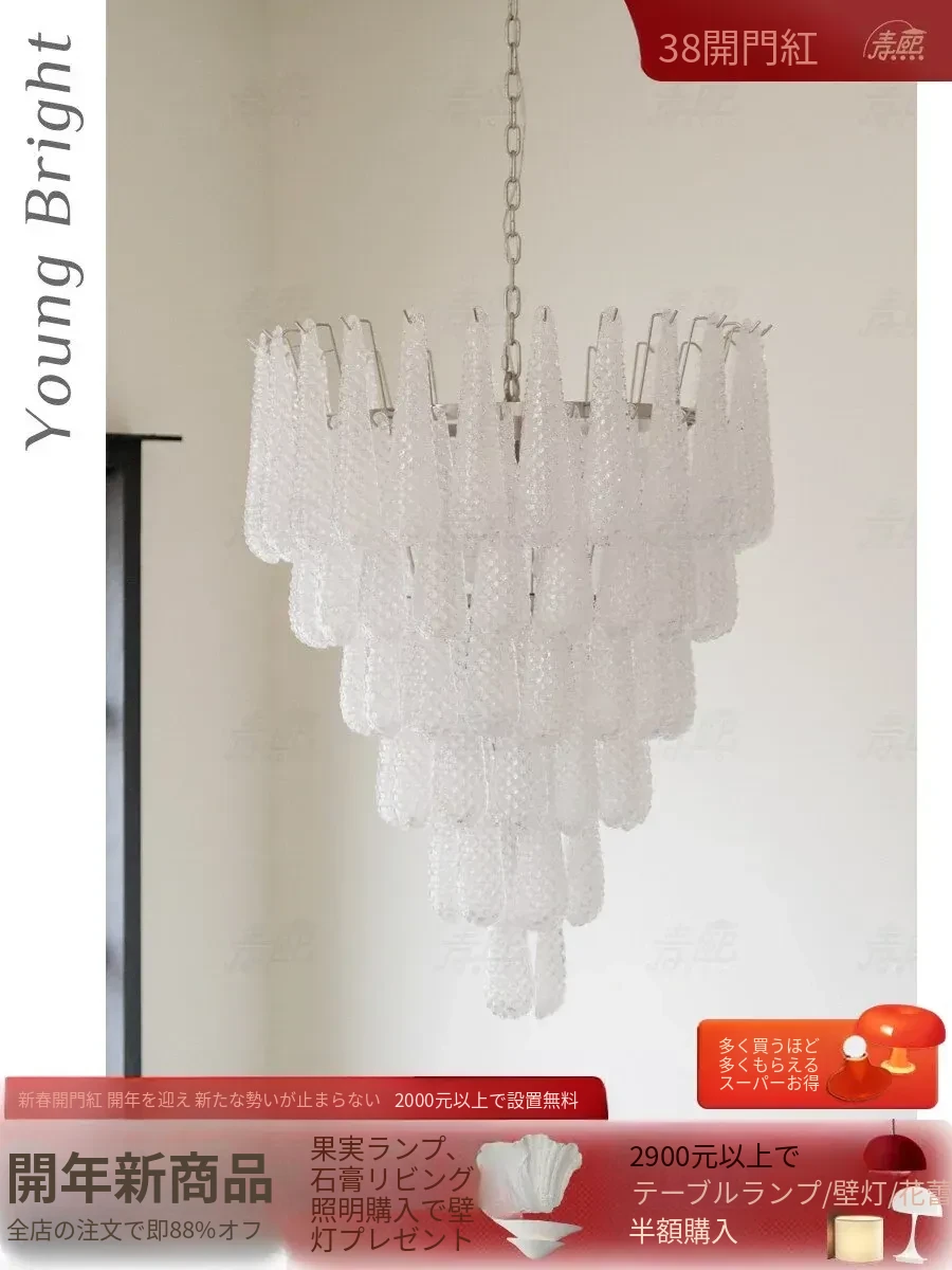 フランス製ムラーノビンテージウォーターフォールガラス空洞デザインのラグジュアリーシャンデリア - 別荘のリビング、階段、寝室、ダイニングに最適なムラーノ吊り灯!洗練された美しさで空間を華やかに演出します。