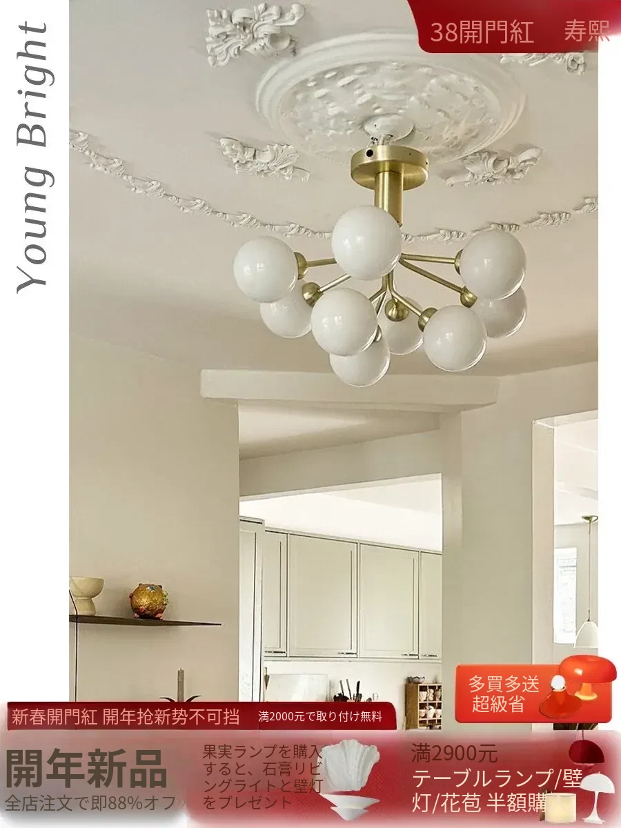 フランス風Nuuraマジックビーン全銅シーリングライト - 寝室、ダイニング、リビングルーム、別荘に最適!洗練されたデザインで、おしゃれな雰囲気を演出。美しいアメリカンスタイルの照明をお楽しみください!