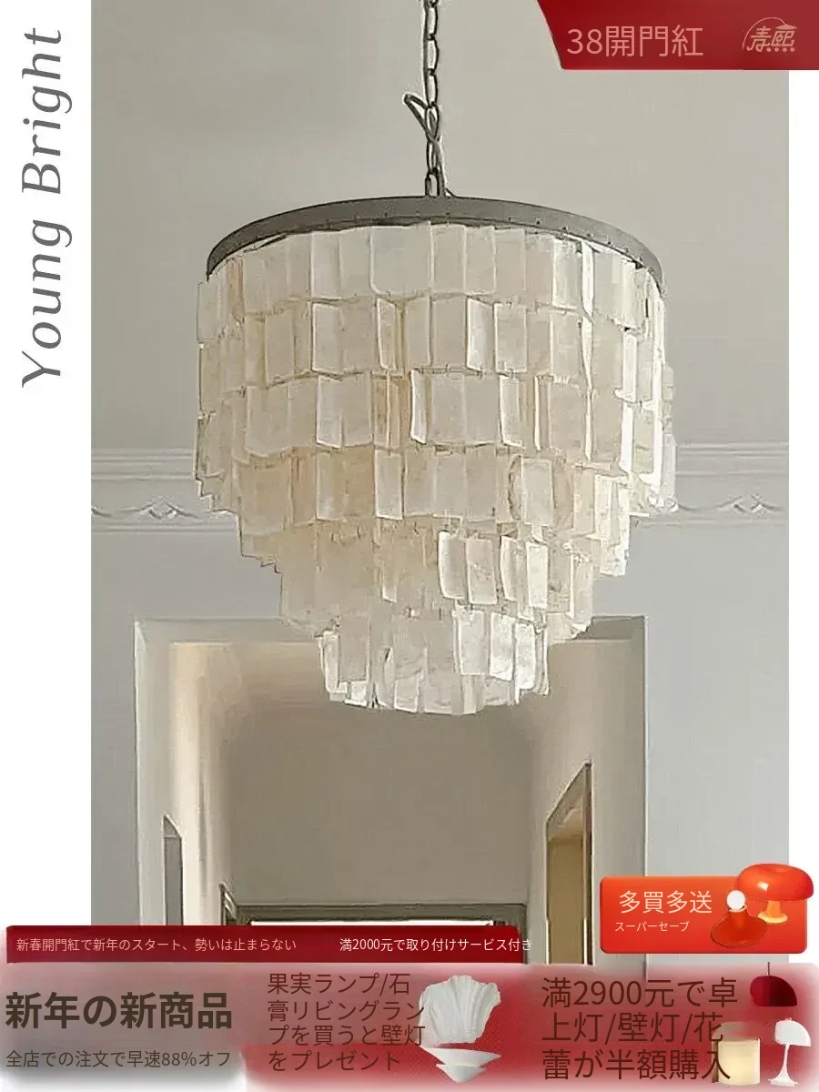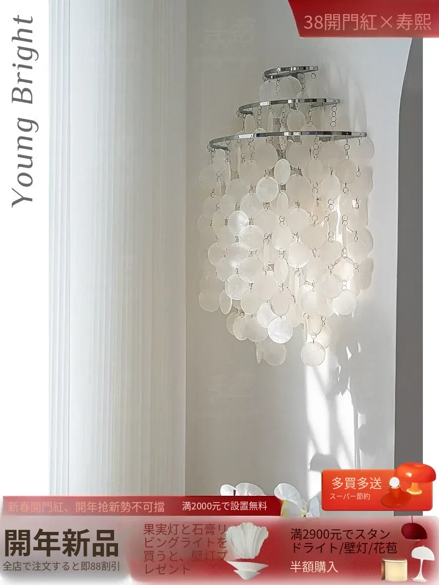 フランス風リビング天然シェル使用のデザイナーレトロダイニング・ベッドルーム・廊下用マザーオブパールの風鈴壁灯 - おしゃれで優雅な空間を演出!