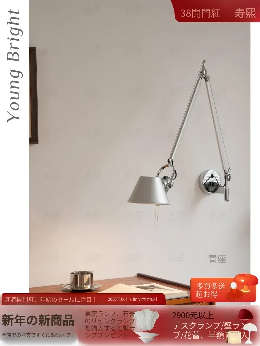 イタリア製アーム伸縮デザインのシンプルなリーディングウォールランプ - 中古のリビングルームや書斎に最適!快適な読書空間を演出します。