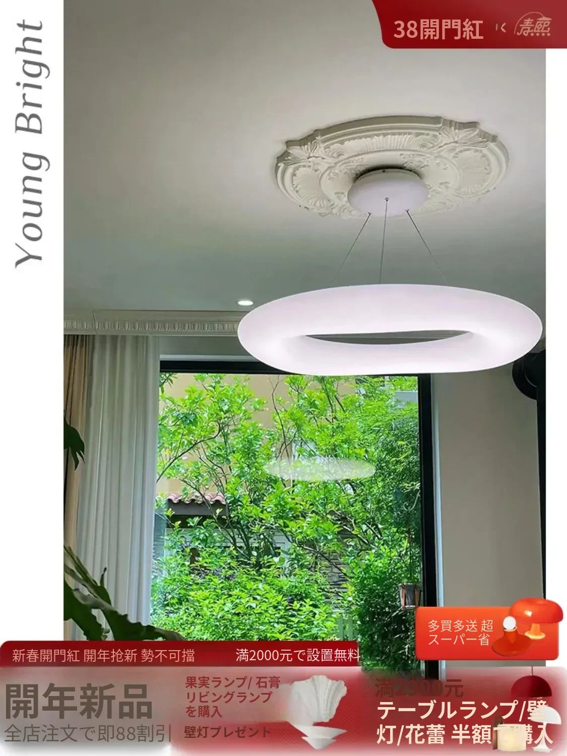 フランス風ノルディックドーナツ雲のシーリングライト|クリーム色のモダンデザイン、リビング・寝室・子供部屋・書斎に最適なデザイナー吊り下げ灯!心地よい雰囲気を演出し、どんな空間にもぴったり!
