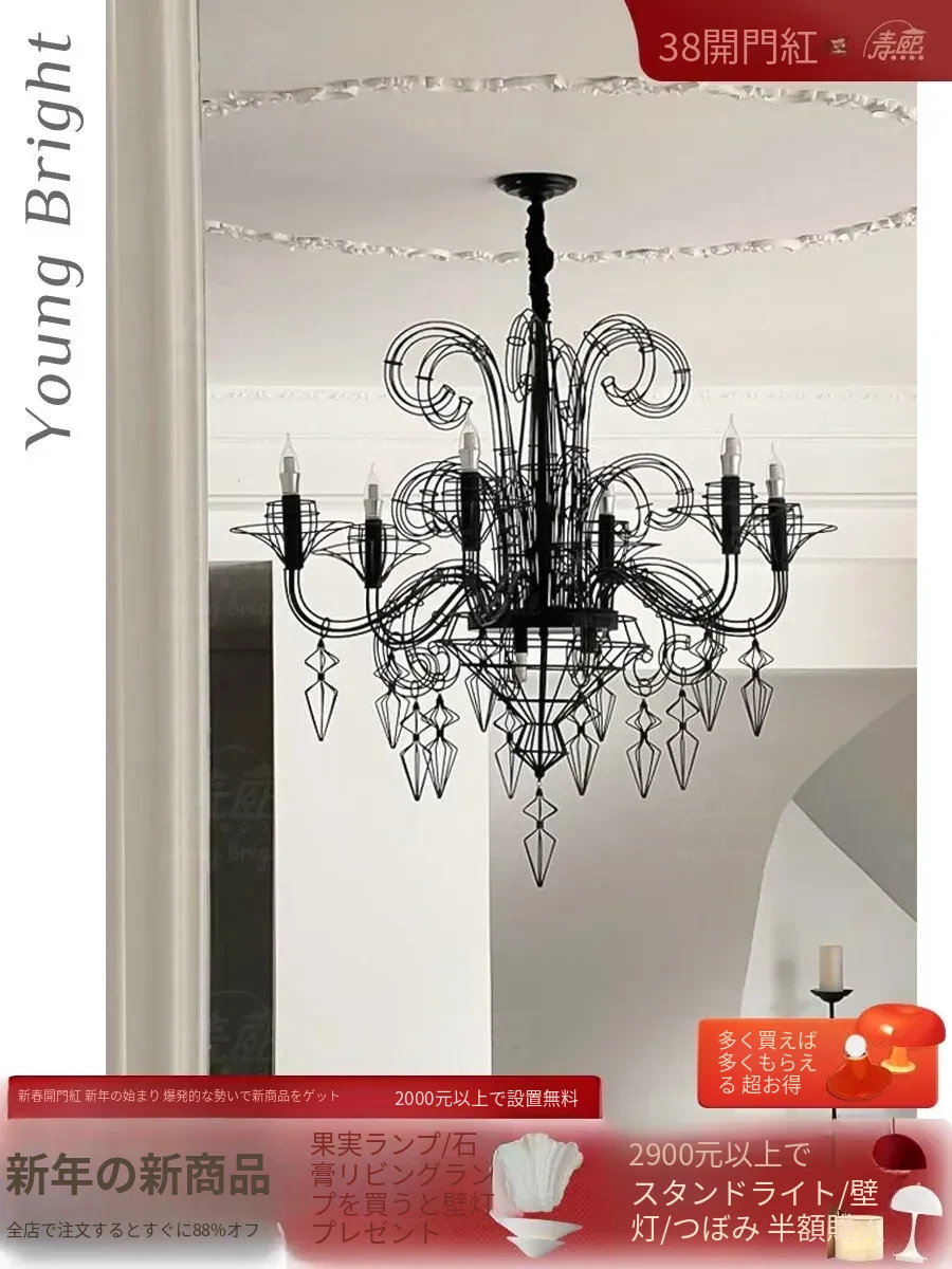 フレンチビンテージ・オードリーラインキャンドル・リビングルームシャンデリア・ブラックヴィラ大灯・バロック階段吹き抜け装飾灯。洗練されたデザインで、空間に優雅さと温もりをプラス!