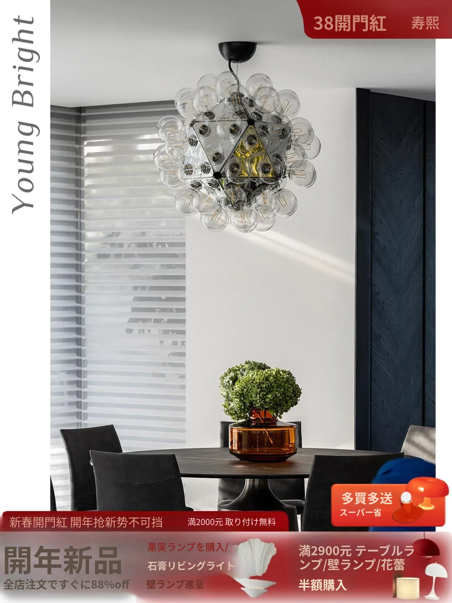 フランス風北欧ミニマリスト南洋中古スタイルのレトロマジックビーン分子スプリンクラーアート純銅ガラス球吊りライト - お部屋を華やかに演出する完璧な照明!
