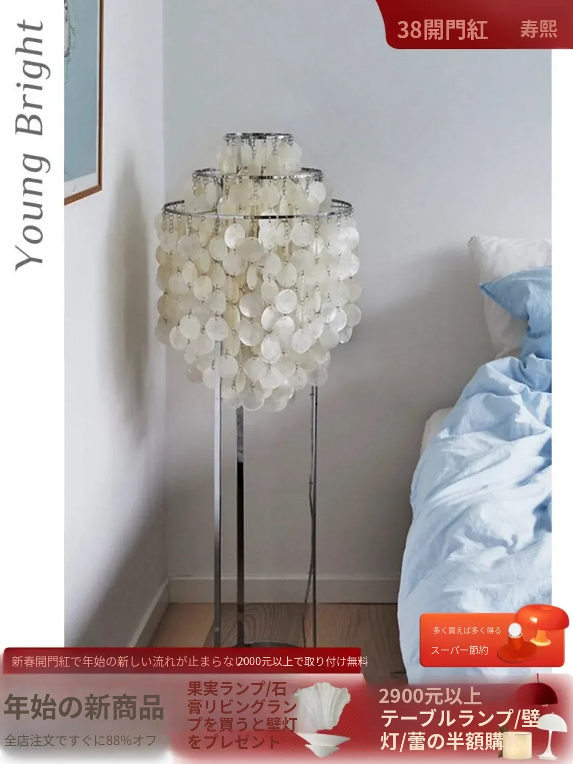 デンマークシェルフロアランプ フランス風パールシェルデザインのリビングルーム用ムードライト アメリカンスタイルの書斎や寝室のベッドサイドランプに最適!優雅な雰囲気を演出し、心地よい空間を作ります。