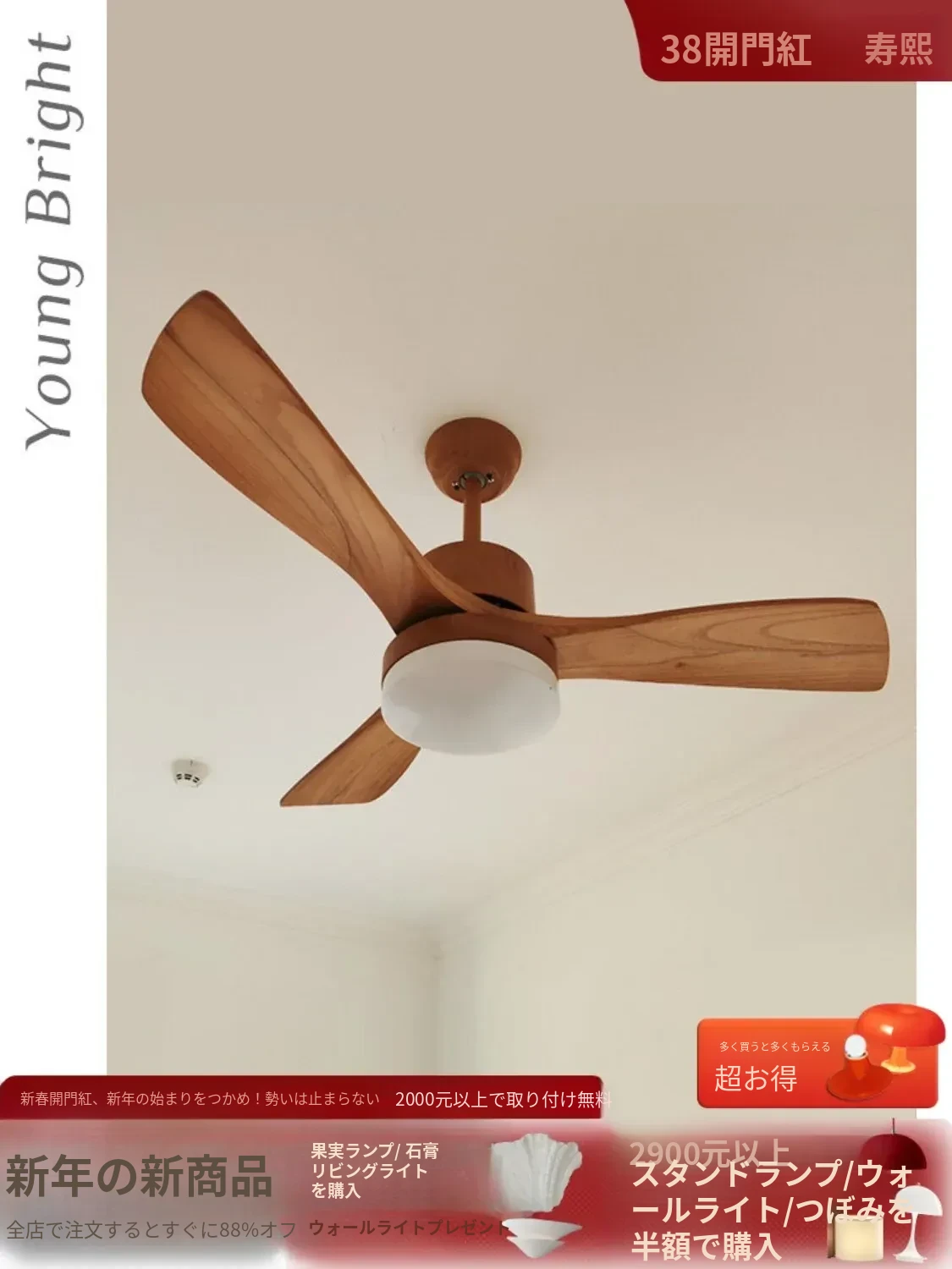 和風スタイルの無垢材ダイニングファンライト - リビングや子供部屋、寝室にぴったり!シンプルで静音のLEDシーリングファンライトで、心地よい空間を演出します。