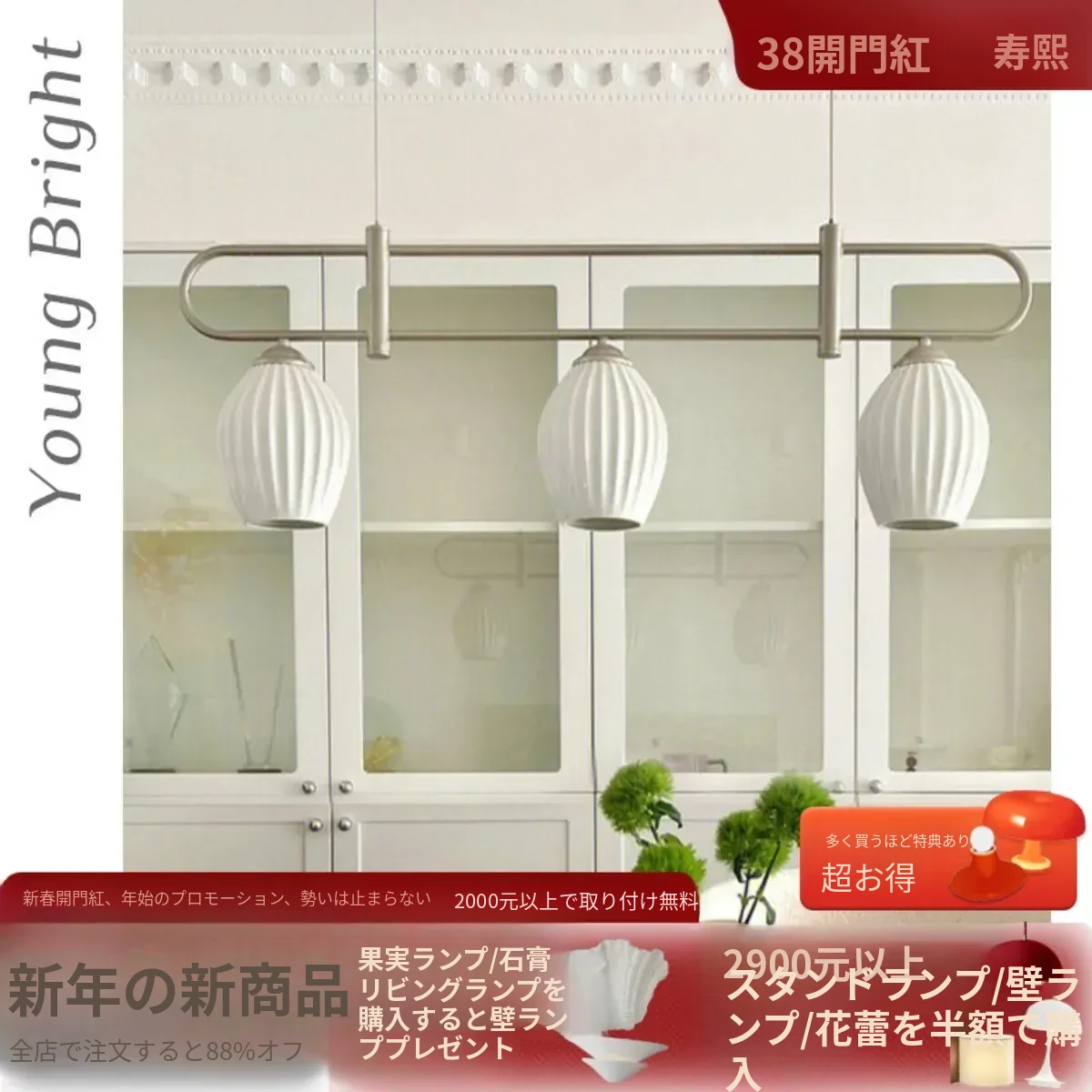 中古フランス風ダイニング用ロングバー吊り下げライト・バウハウスデザイン、ソフトな乳白色のボーンチャイナ素材使用、アメリカンヴィンテージスタイルのバー&ダイニングテーブルにぴったりな装飾用照明!