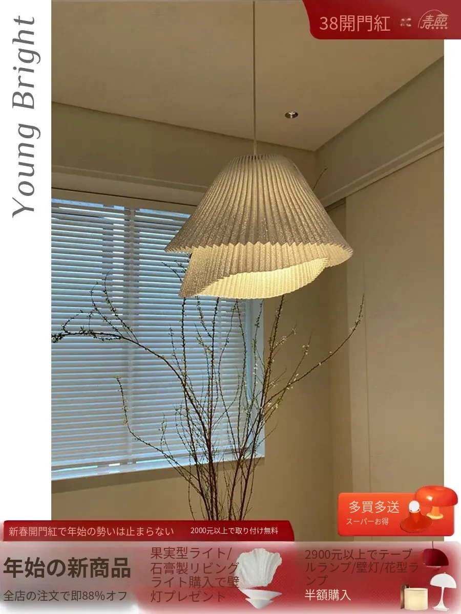 フランス製シルクのモダン吊り灯 - イタリアデザイナーの侘寂スタイル、クリーム風のヴィラ用寝室照明。優雅さと洗練を兼ね備えたインテリアを演出します!